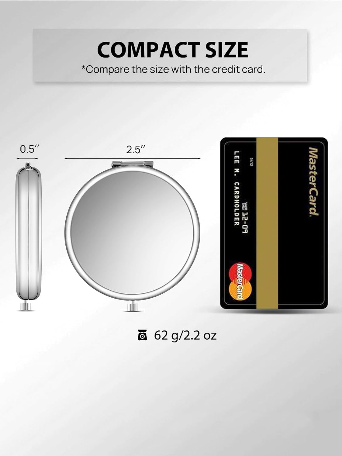 - PORTABLE SIZE & 7 COLORS AVAILABLE: Small mirror that is only 2.5 inches in diameter. Fits nicely in your bag, purse, or even your pocket - seven colors to choose from Gold, Rose Gold, Black, Pink, Silver, Cyan and Light Blue