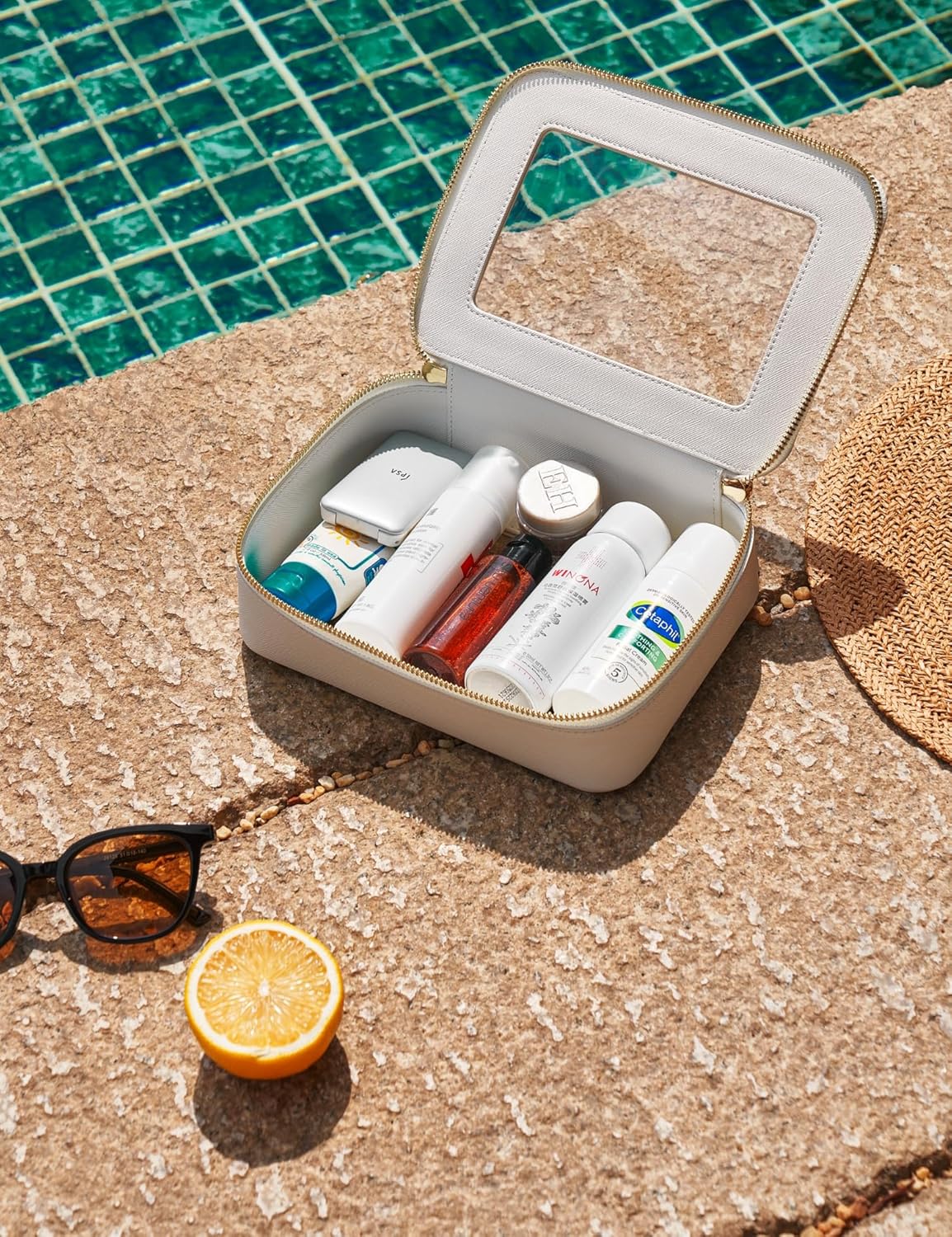 - [Compact and Portable] – The white travel make up bag measures 8.3'' x 6.1'' x 2.4'' (21cm x 15.5cm x 6cm), designed to offer a compact and travel-friendly solution for organizing your makeup and toiletry essentials. It can be easily fit into a variety of bags, whether you prefer to carry it in a handbag, tote, or travel luggage.