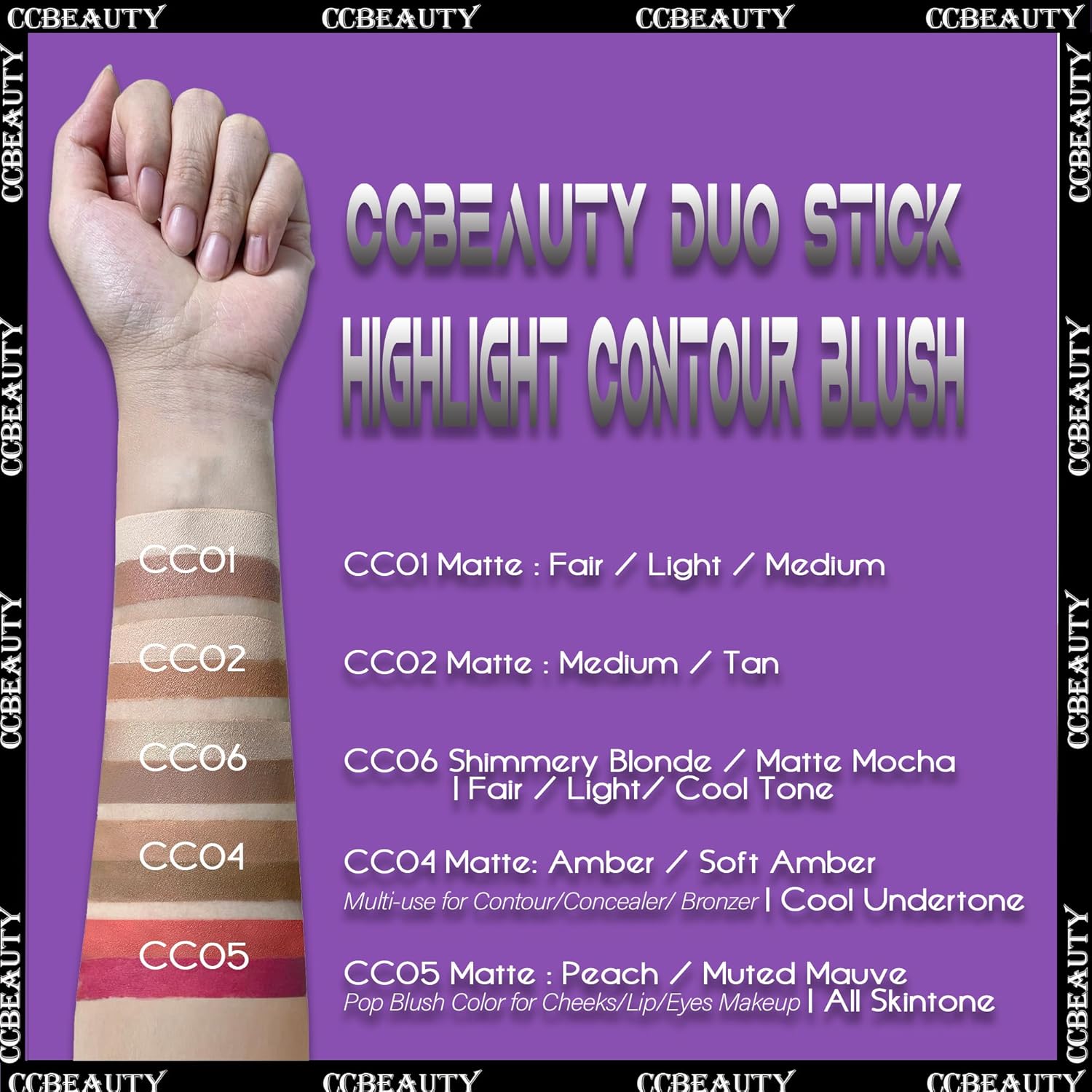 CCbeauty 2-IN-1 Contour Stick Makeup,Cream Shimmer Highlighter Bronzer Stick, Highlighting Contouring Kit, Highlight Concealer Sticks for Face Shaping Make up, Long Lasting & Waterproof