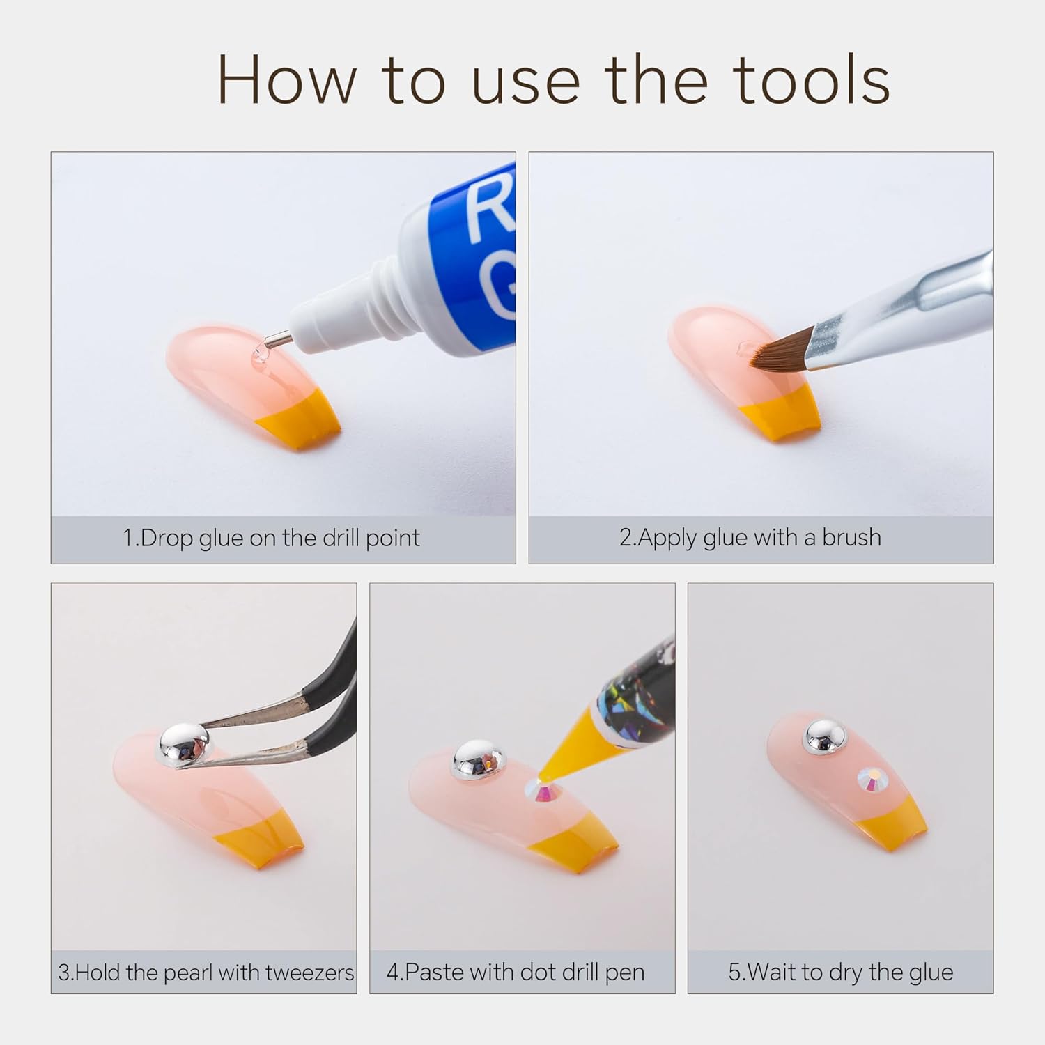 - Useful tools - These pearls and rhinestones have a flat back, which is excellent for easy placement.and you can pick up any large or small pearls and rhinestones with the crayons we bring along. And use the brush to smooth out the Gel, these tools will work very well