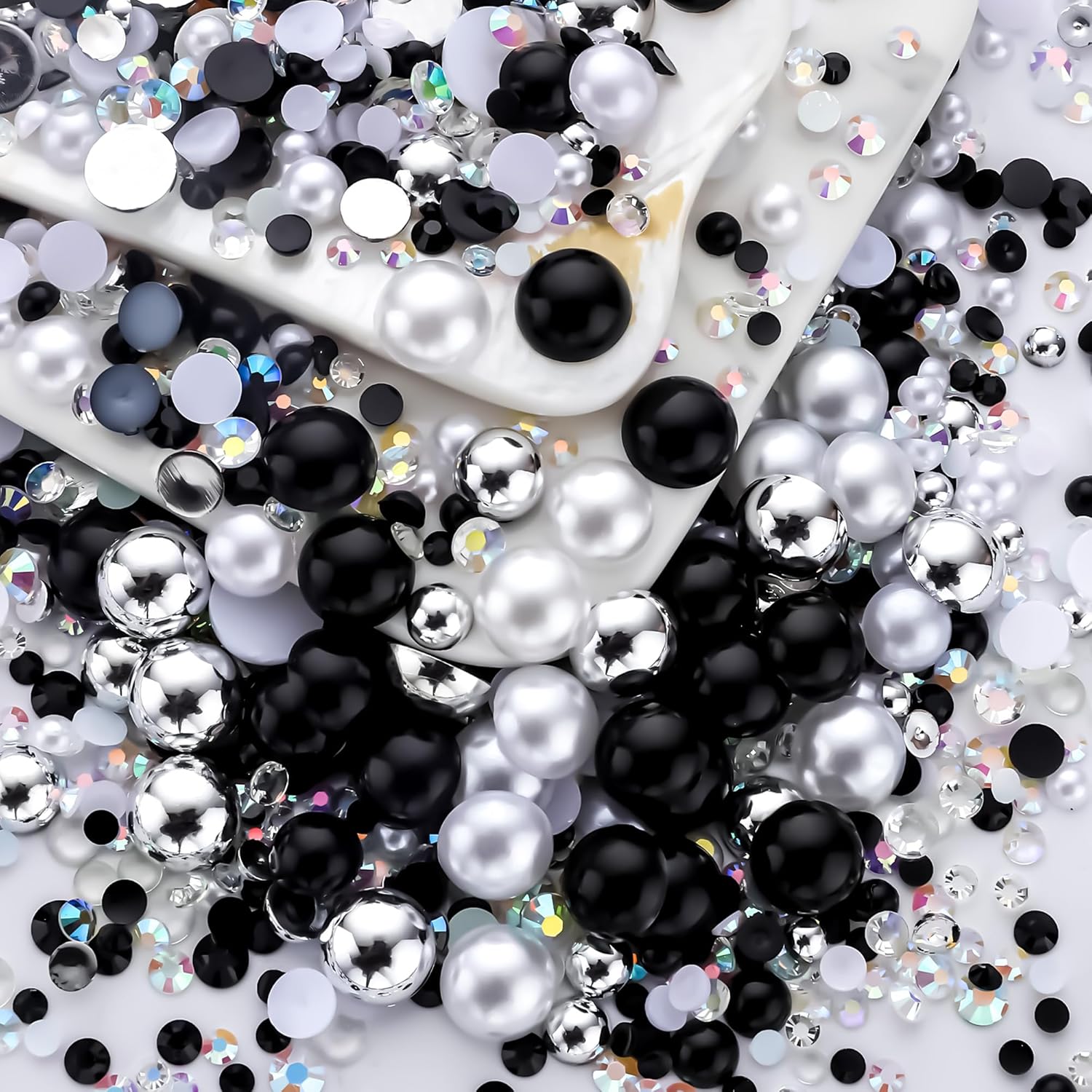 60g Black White Pearls Rhinestones for Crafts Mixed Size 3mm-10mm AB Color Round Half Pearls Flatback Pearl Beads and Resin Rhinestones Set for Face Art with Glue