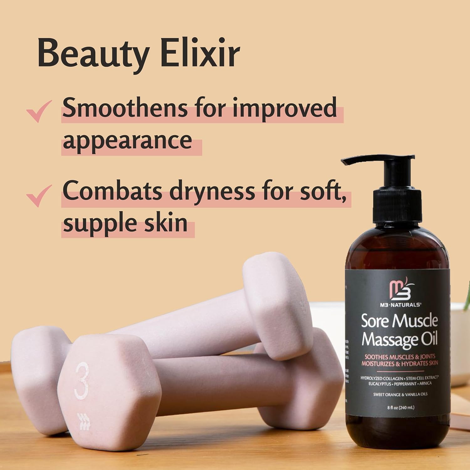 M3 Naturals Arnica Sore Muscle Massage Oil with Collagen, Stem Cells, and Menthol, Anti-Cellulite Therapy for Full Body, Fast-Absorbing Multipurpose Treatment