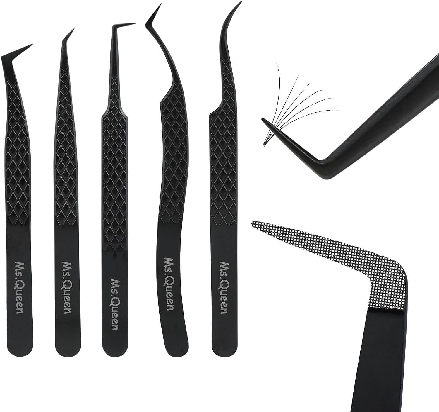 - ★RUST-RESISTANT& ANTI-STATIC: Crafted from 100% surgical-grade stainless steel,Ms.Queen tweezers are rust-resistant,anti-static and anti-magnetic,ensuring they won't interfere with the application process or cause damage to your clients' lashes.