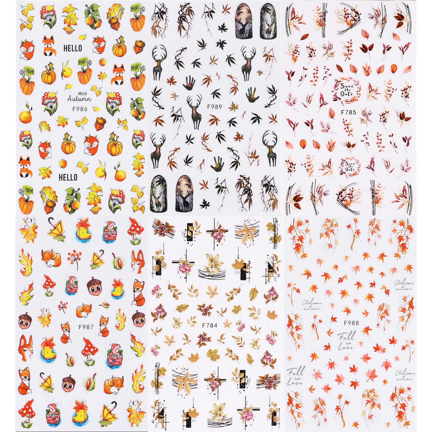 - 🍁Enhance Your Fall Manicure: Elevate your fall nail art with our high-quality Fall Nail Art Stickers. These 6 sheets of stunning gold yellow maple leaf 3D self-adhesive nail decals feature cute squirrel and elk designs, perfect for adding a festive touch to your autumn nail decorations.