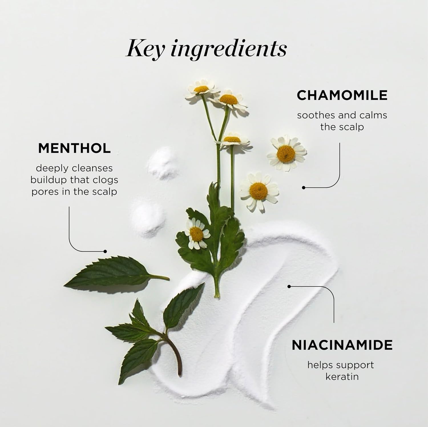 - Helps hydrate dry scalp. Antioxidant-rich, scalp-revitalizing formula, including chamomile, niacinamide and menthol. Nourishes the root and invigorates your scalp with a cooling sensation with a fresh lemon verbena and herbal scent. Perfect for men and women.