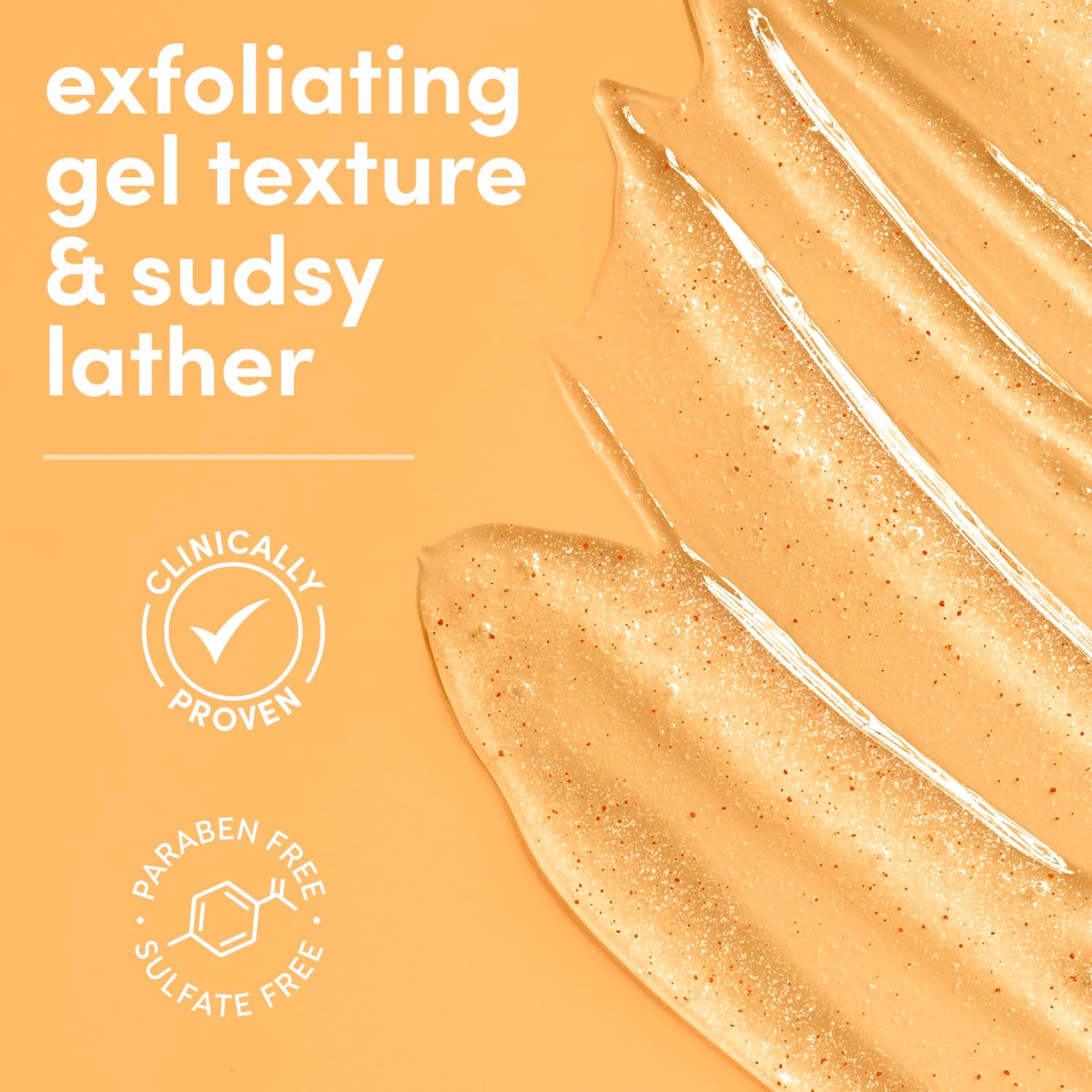 - EXFOLIATING, SERUM WASH: This exfoliating gel body wash transforms into a creamy lather, filling your shower with notes of tropical fruit and sweet berries