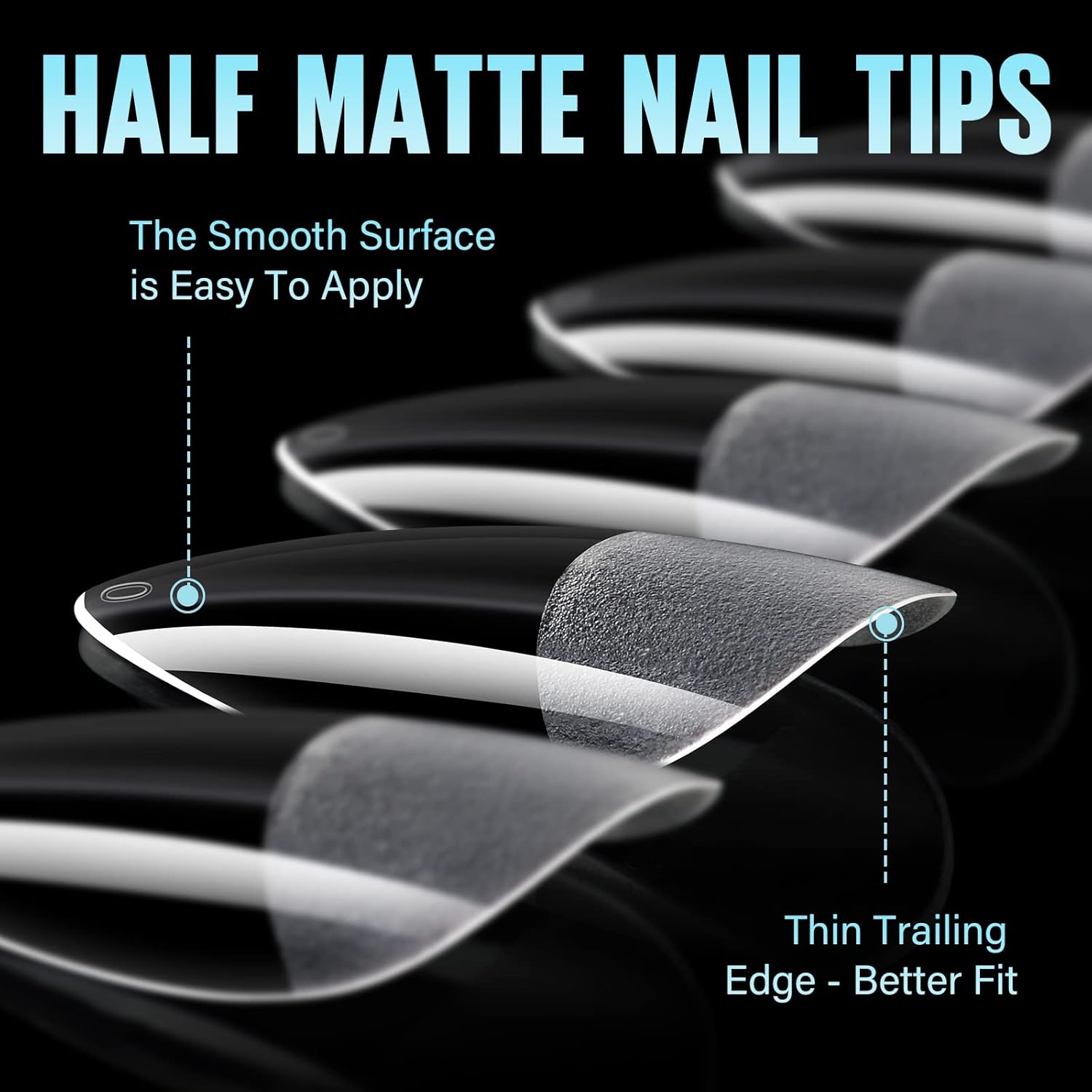 - 【Half Matte Medium Almond Nail Tips】Showcase your unique style with TOMICCA pre-buffed gel nail tips! The full cover acrylic nail tips design simplifies DIY manicures while offering a textured matte finish that improves grip and adhesion, delivering long-lasting, salon quality results.