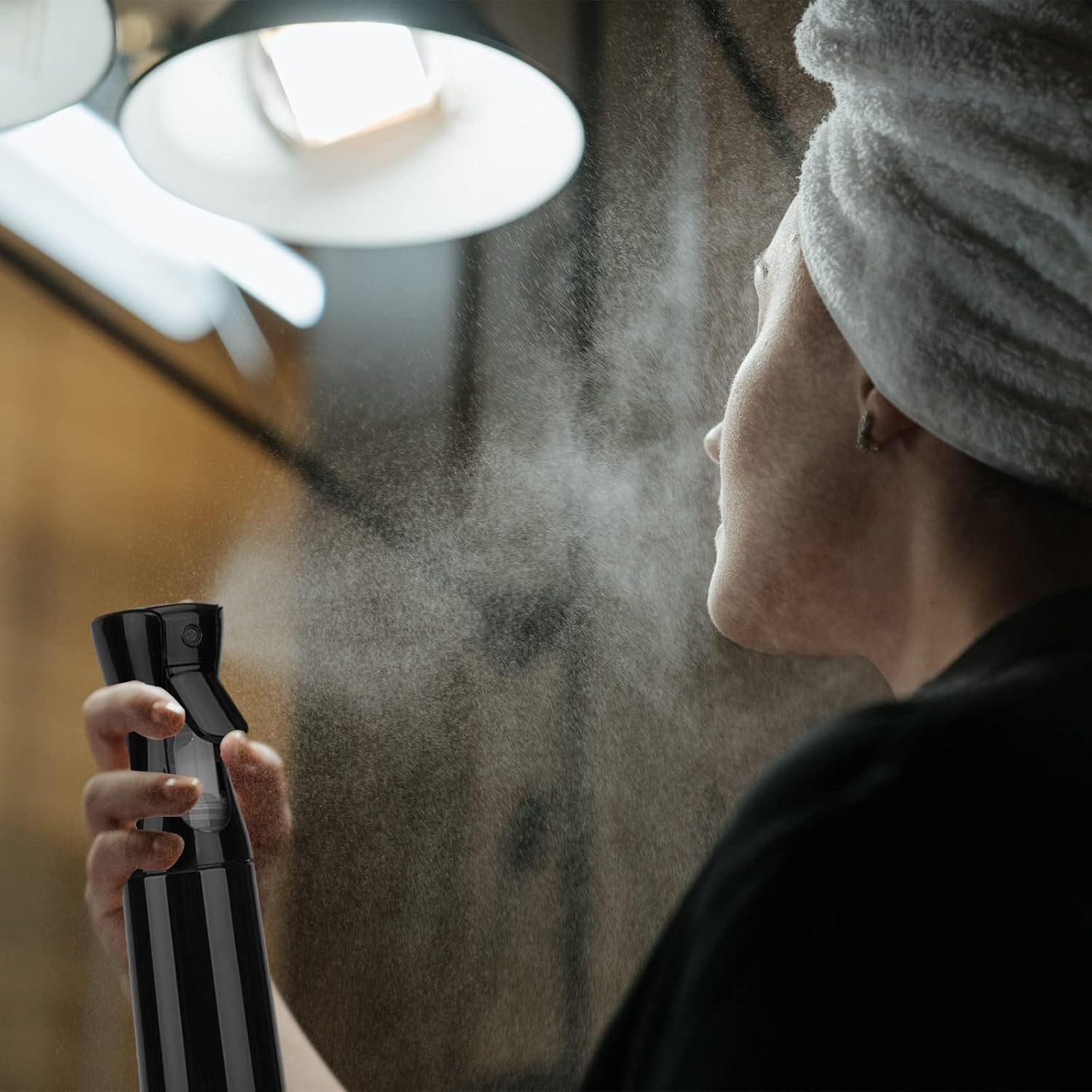 Spray Bottle for Hair (6.8OZ /200ML) Continuous Ultra Fine Mist Sprayer for Hair, Salons, Barber, Plants, Skin Care, Cleaning 1 Pack BLACK