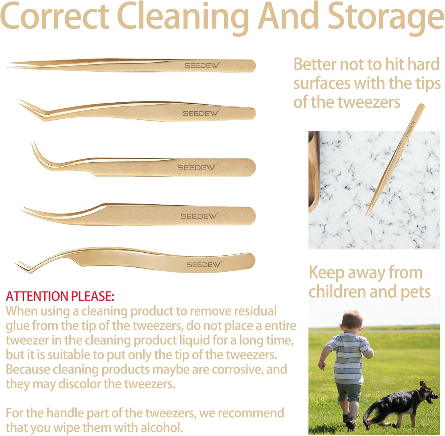 - ⭐【Premium And Classic】SEEDEW stainless steel golden tweezers have texture, smooth surface, classic and elegant style. A basic tweezer set, an unmistakable choice for eyelash artist beginners.