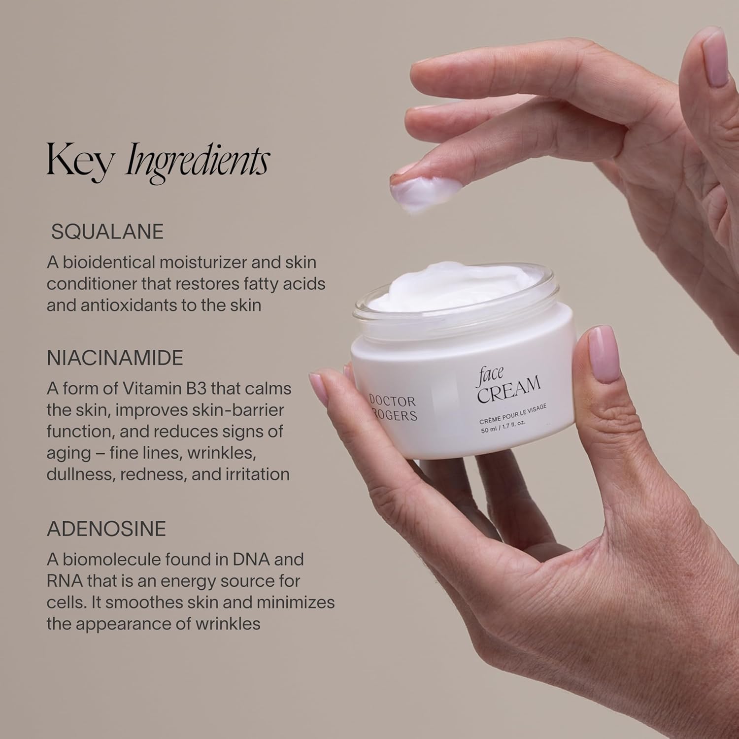 Doctor Rogers Face Cream Moisturizer: Hydrating Facial Cream. With Niacinamide, Shea Butter & Squalane. Anti-Aging & Moisturizing Lotion. Suitable for Sensitive & Dry Skin, 1.7 Ounce (50ml)