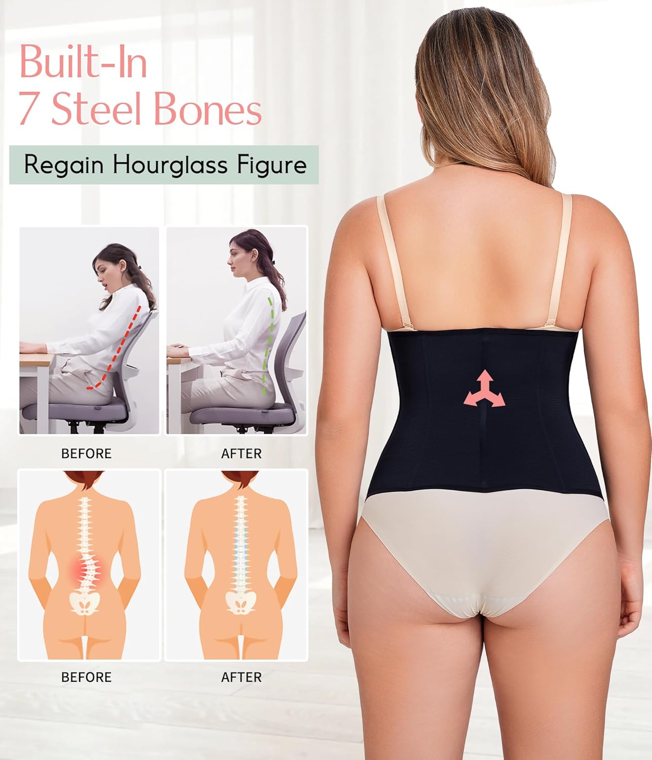 - BODY SLIMMING CORSET WAIST TRAINER: Our tummy control shapewear can hold your belly, reduce waistline, create instant slim curve to achieving the hourglass figure. Inner with adjustable 3 rows of hook and eye closure, the waist trainer for women lower belly fat is widely enough to wrap the whole abdominal area in different stage effectively. Outer plus with durable zipper, double control to flatten and tighten the tummy, giving you immediate slimming effect to enhance your natural curves.