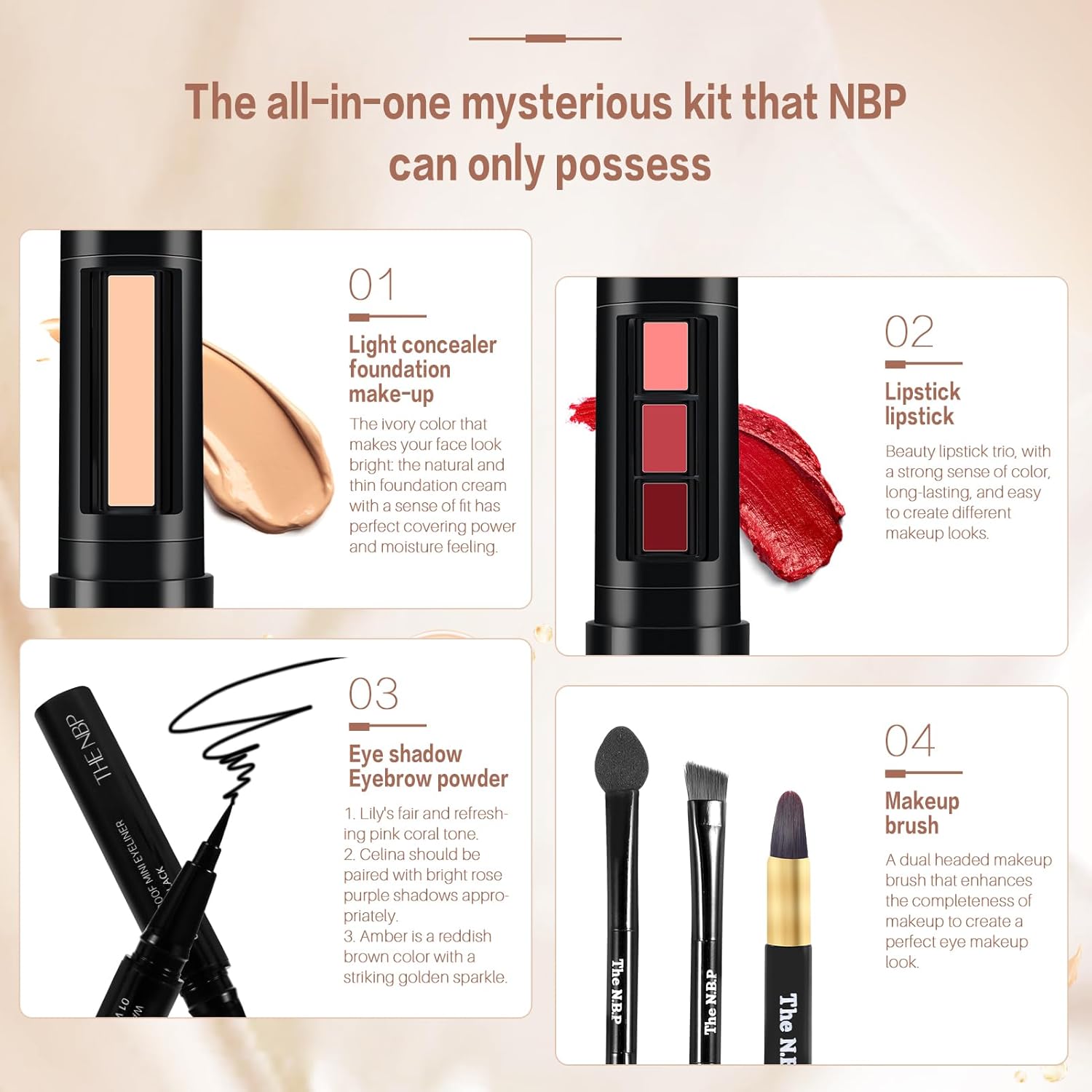 Portable Professional Makeup Kit,Mini Professional Makeup Kit Eyeshadow Palette Lip Gloss Concealer,Lipstick shape and size,7 Color