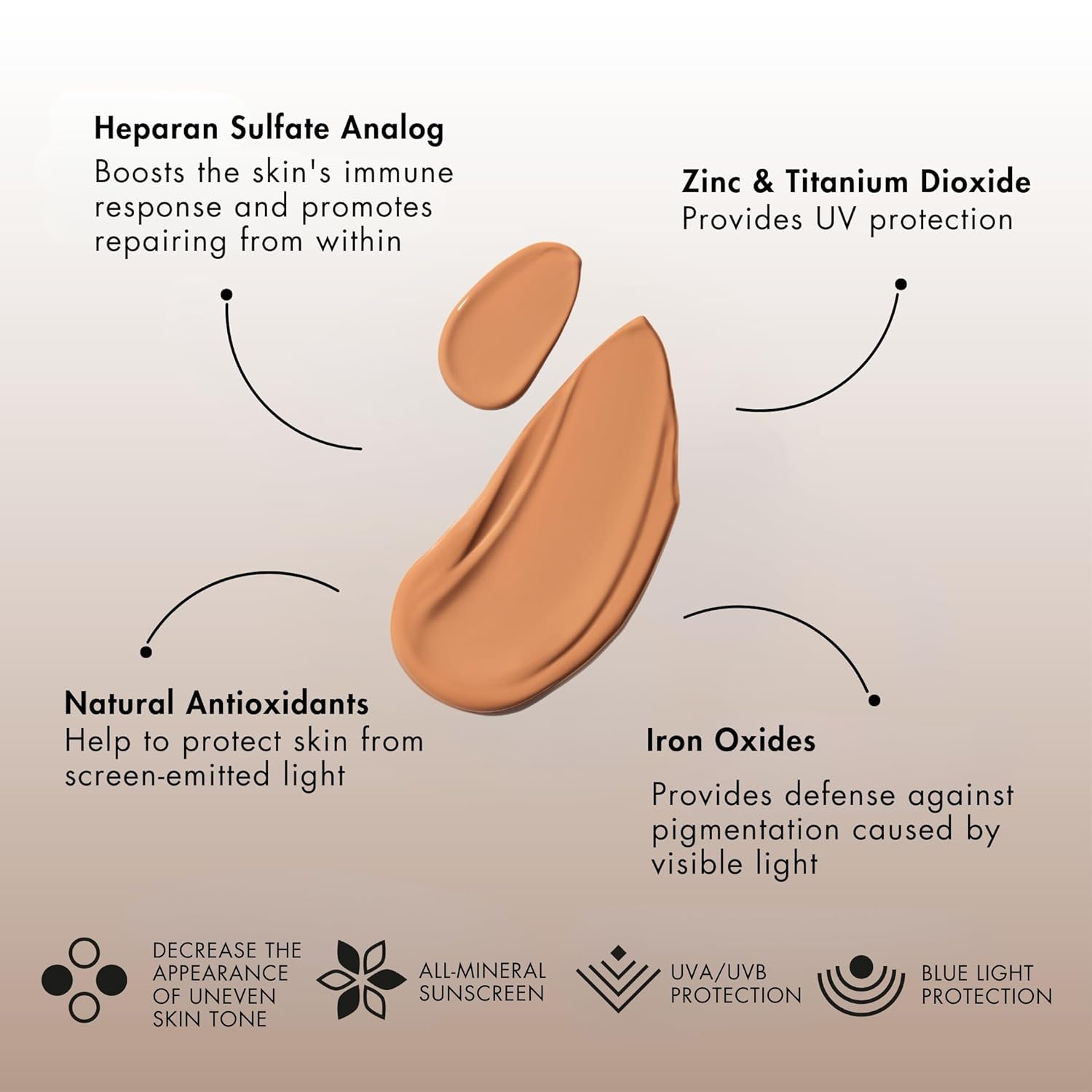 - Provides broad-spectrum UVA/UVB sun protection and protects skin against the damaging effects of blue light, including light-induced pigmentation