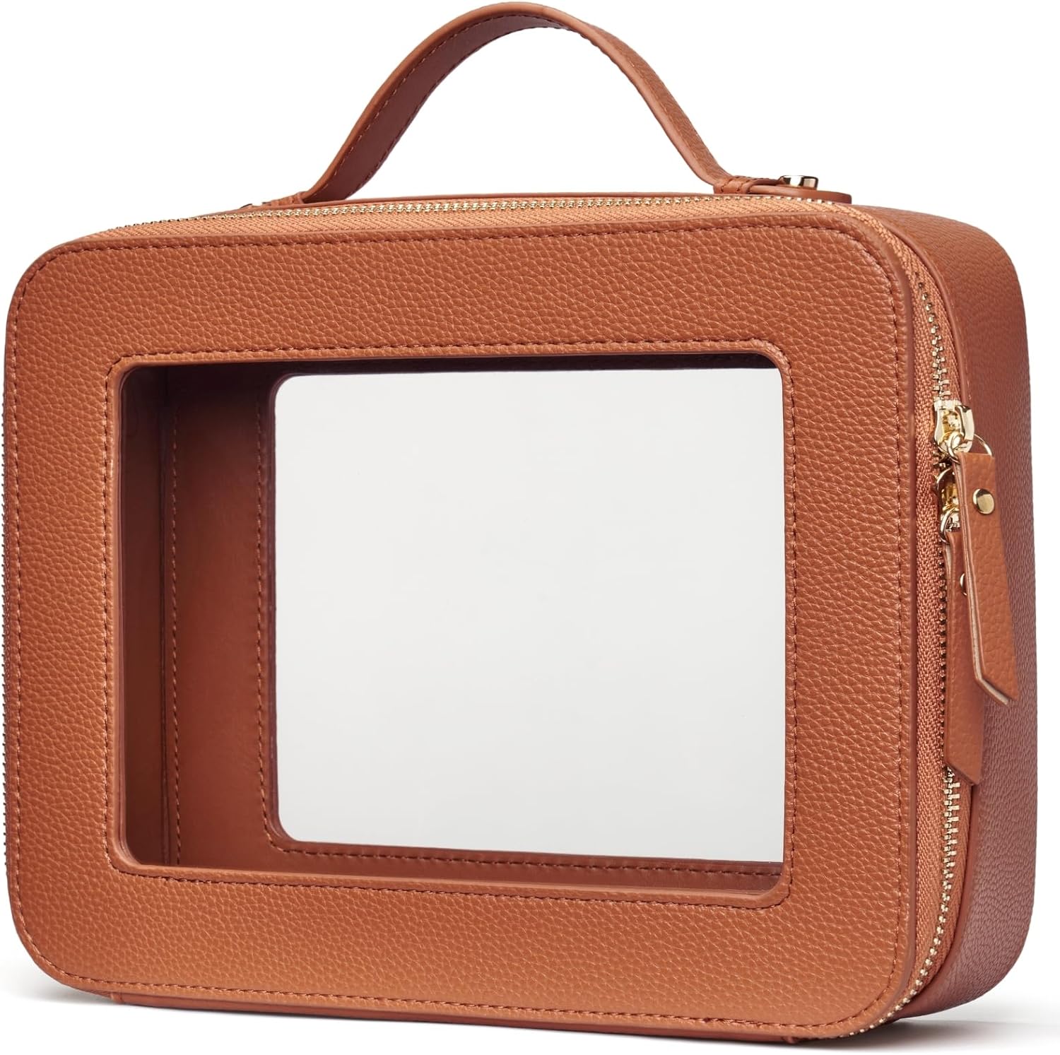 - [Spacious and Roomy] – The brown travel make up bag measures 9.6'' x 7.5'' x 3.1'' (24.5cm x 19cm x 8cm), ideal for extended trips or situations where you need to carry a comprehensive collection of makeup and skincare products. It is designed to fit comfortably in suitcases and big travel bags.