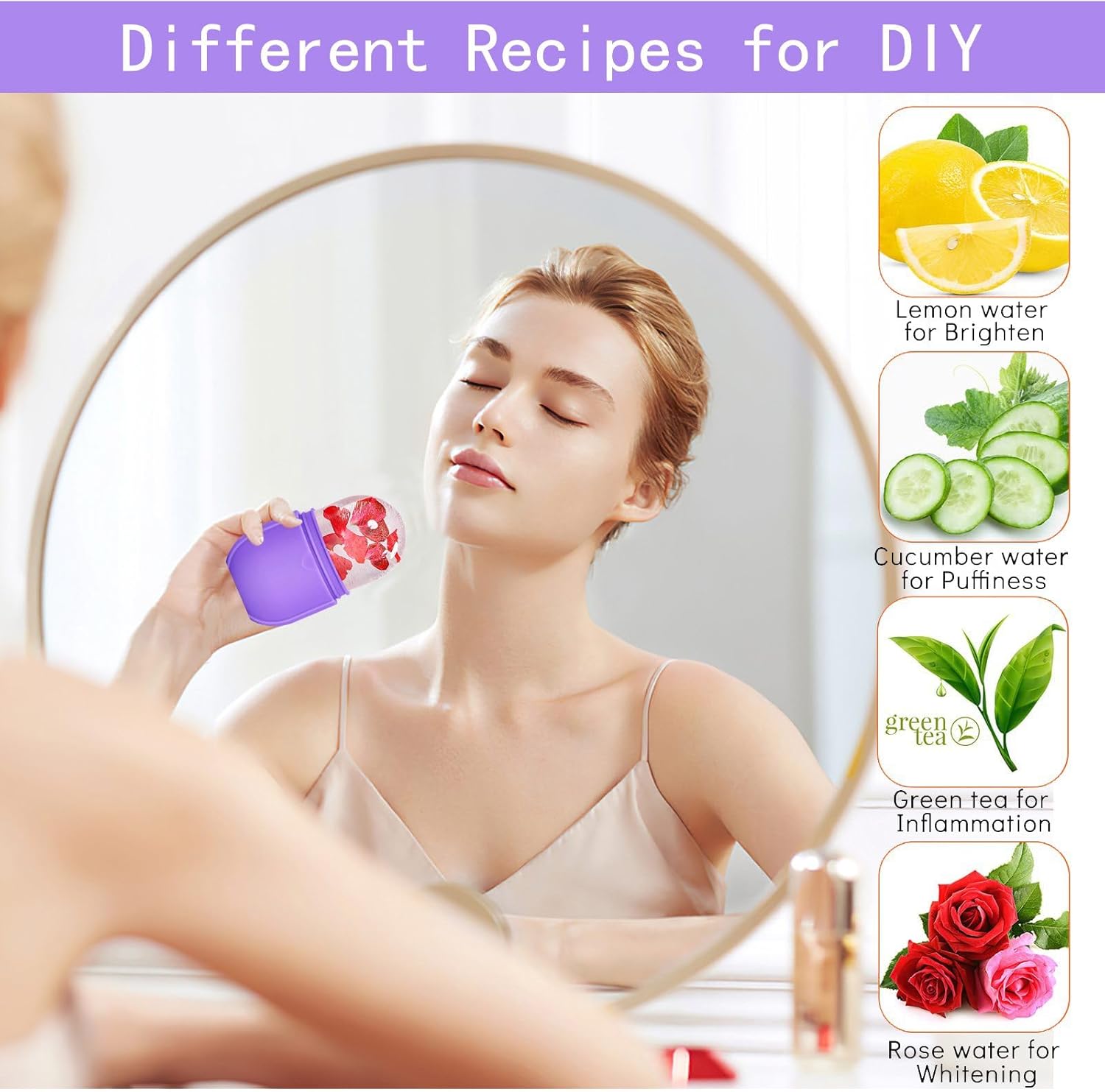 KOGITI Face Ice Roller & Mold - Beauty Facial Massage Tool for Puffiness Relief, Ice Cube Holder (New-Purple)
