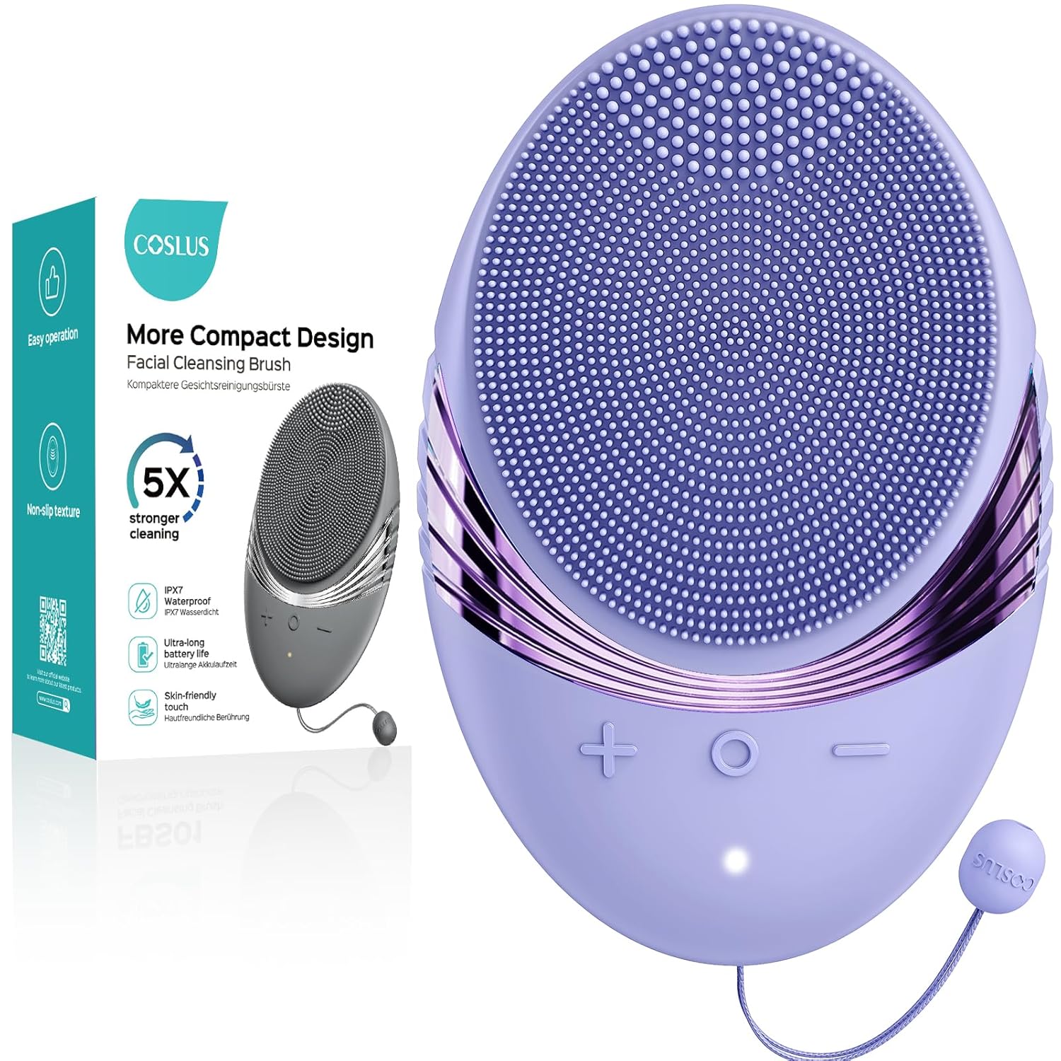 COSLUS Facial Cleansing Brush Face Scrubber : Silicone Waterproof Rechargeable Face Wash Brush, 5 Cleansing Modes, Electric Deep Cleaning for Men & Women, Removing Blackhead, Exfoliating, Massaging