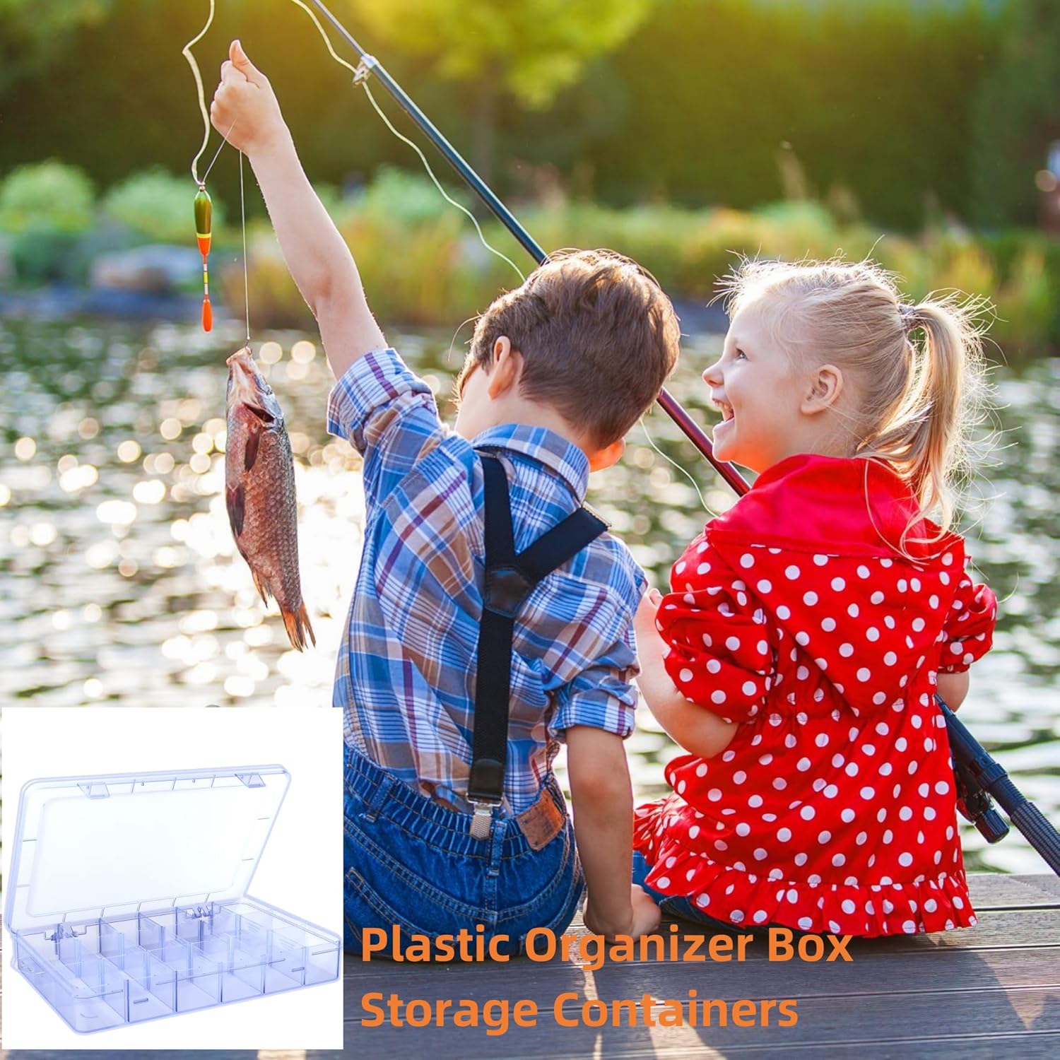 Large Clear 18 Grids Plastic Organizer Box Storage Containers with Lid with Removable Dividers for Jewelry,Bead Storage Organizer Box,Compartments Organizers