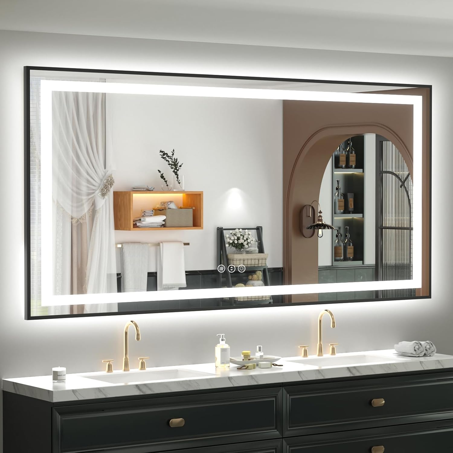 - 【Matte Black Metal Frame LED Mirror】Our led mirror for bathroom have thin and durable black metal frame that provides sufficient brightness and elegance look. It combines practicality and modern beauty, is a ideal for decorating bathroom, living room, bedroom, hair salon and hotel.