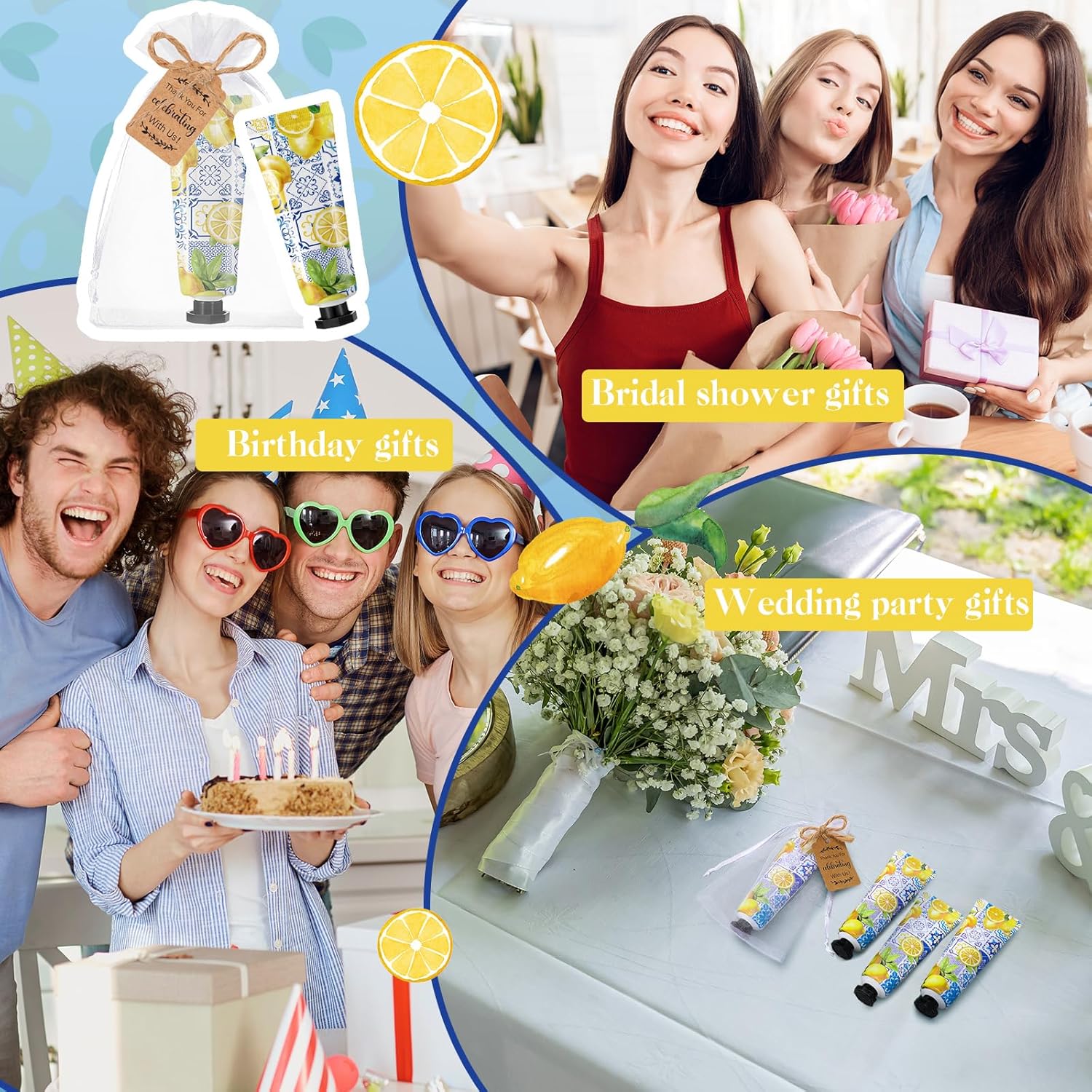48 Sets Baby Shower Hand Cream Party Favors for Guests Gift Bulk Travel Size Hand Lotion Set for Baby Shower Wedding Christmas(Lemon)