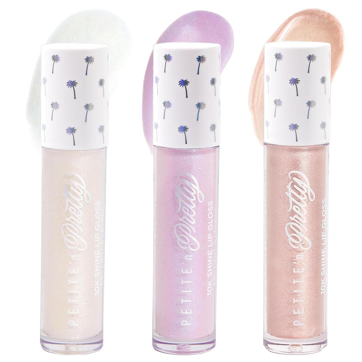 Petite 'N Pretty 10k Shine Lip Gloss Trio Set - Makeup for Kids, Tweens, Teens - High Shine, Lightweight, Made in the USA (Shell Shocked, Diamond Heist, Glow Down)