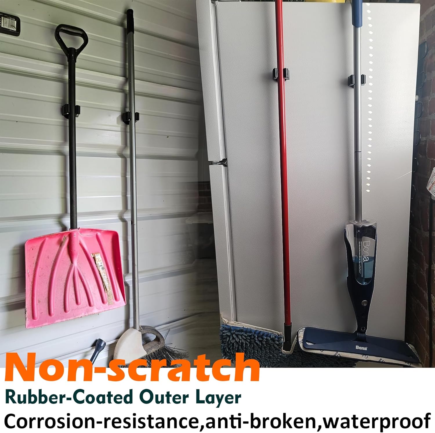 - Non-scratch Broom Holder with Gripper: Anti-rust and anti-scratch, 8PCS magnetic mount heavy-duty magnetic mop holder can stick firmly to any ferrous metal surface and will not damage or scratch tool boxes, tool cabinets, or metal cabinets