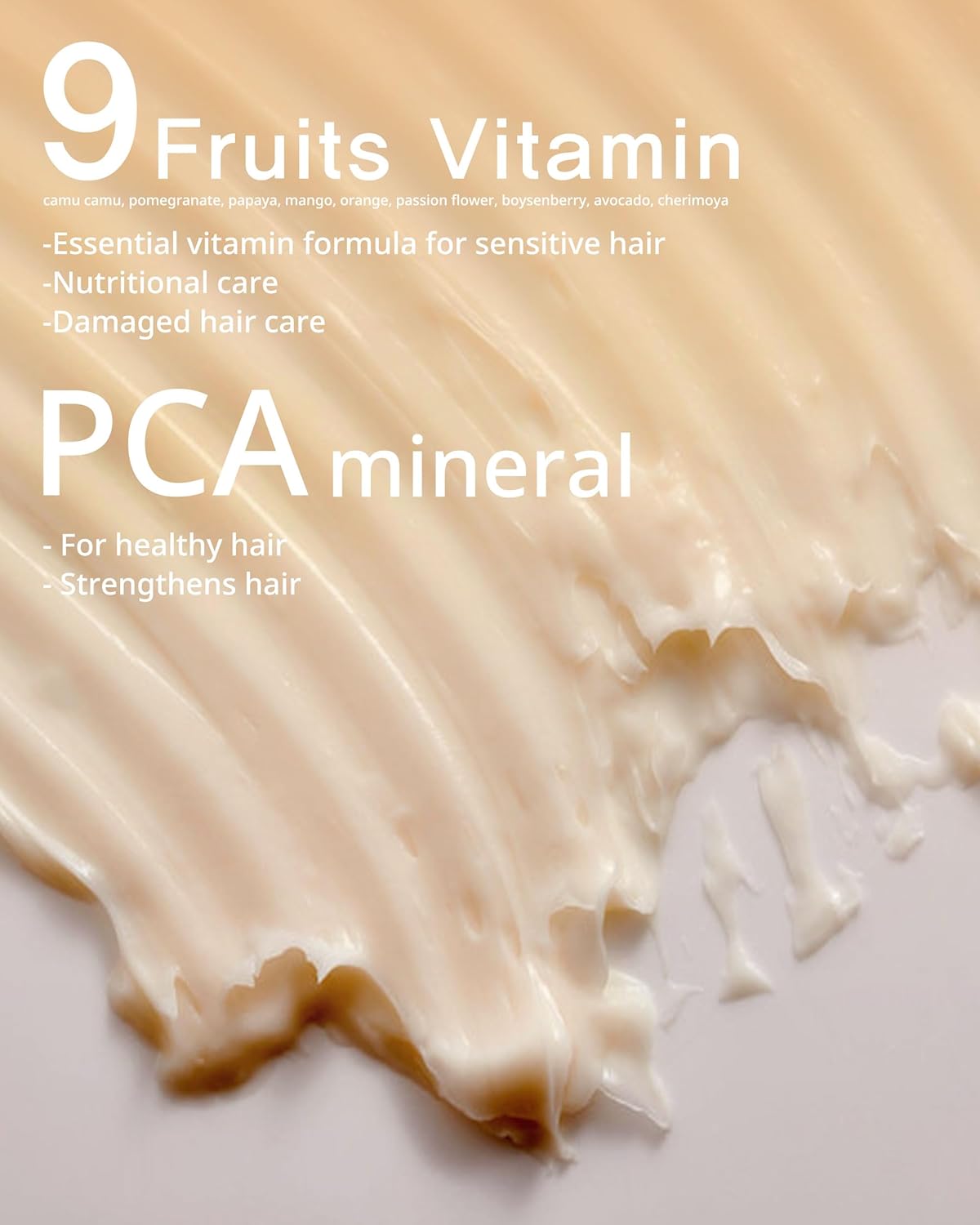 - RICH IN VITAMINS AND MINERALS: Packed with a powerhouse of 9 fruit vitamins including CamuCamu, Pomegranate, Papaya, Mango, and more, this conditioner is a nutrient haven for your hair. The PCA complex mineral ingredients further enhance its moisturizing capabilities, ensuring every strand is deeply nourished.