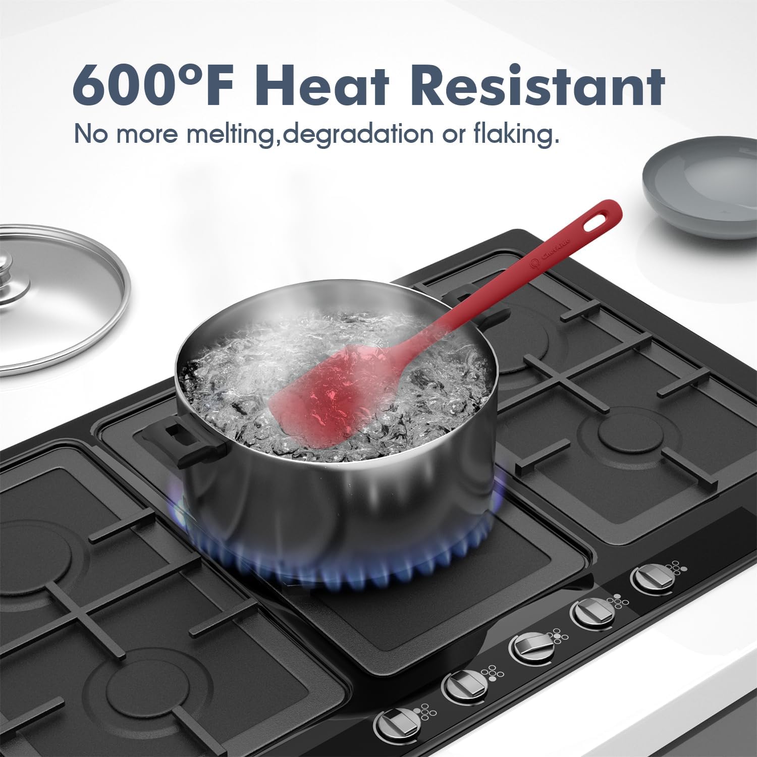 - Premium 100% Food Grade Silicone: The silicone spatula set is made of healthy and friendly material, resistant to high temperatures up to 600 °F. No more melting, cracking and worrying