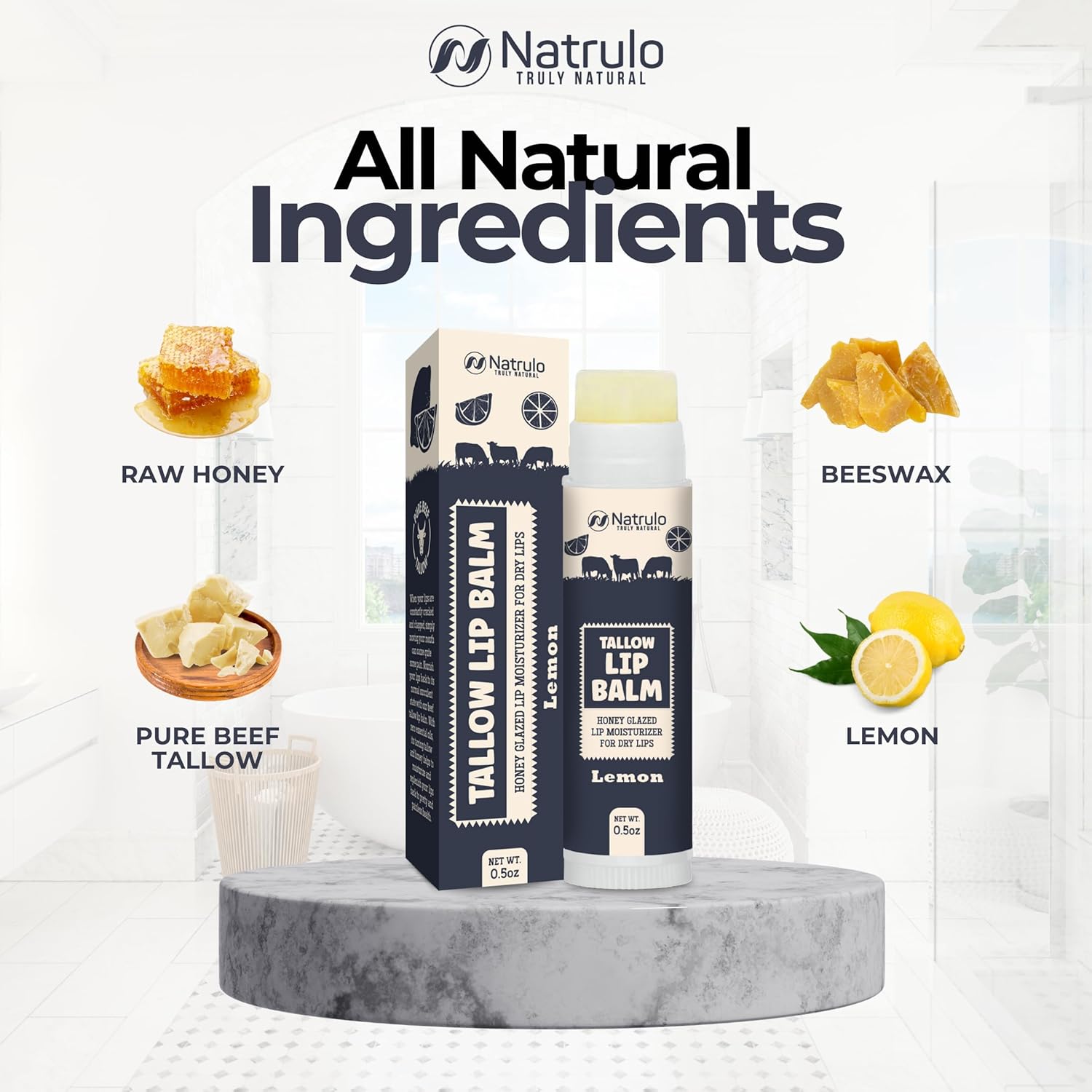 • INTENSELY HYDRATING FORMULA: Immerse your lips in moisture with our grass-fed organic beef tallow lip balm with lemon flavor. Crafted with natural fats, akin to those in human skin, it maintains your lips' moisture barrier for enduring hydration and velvety softness.