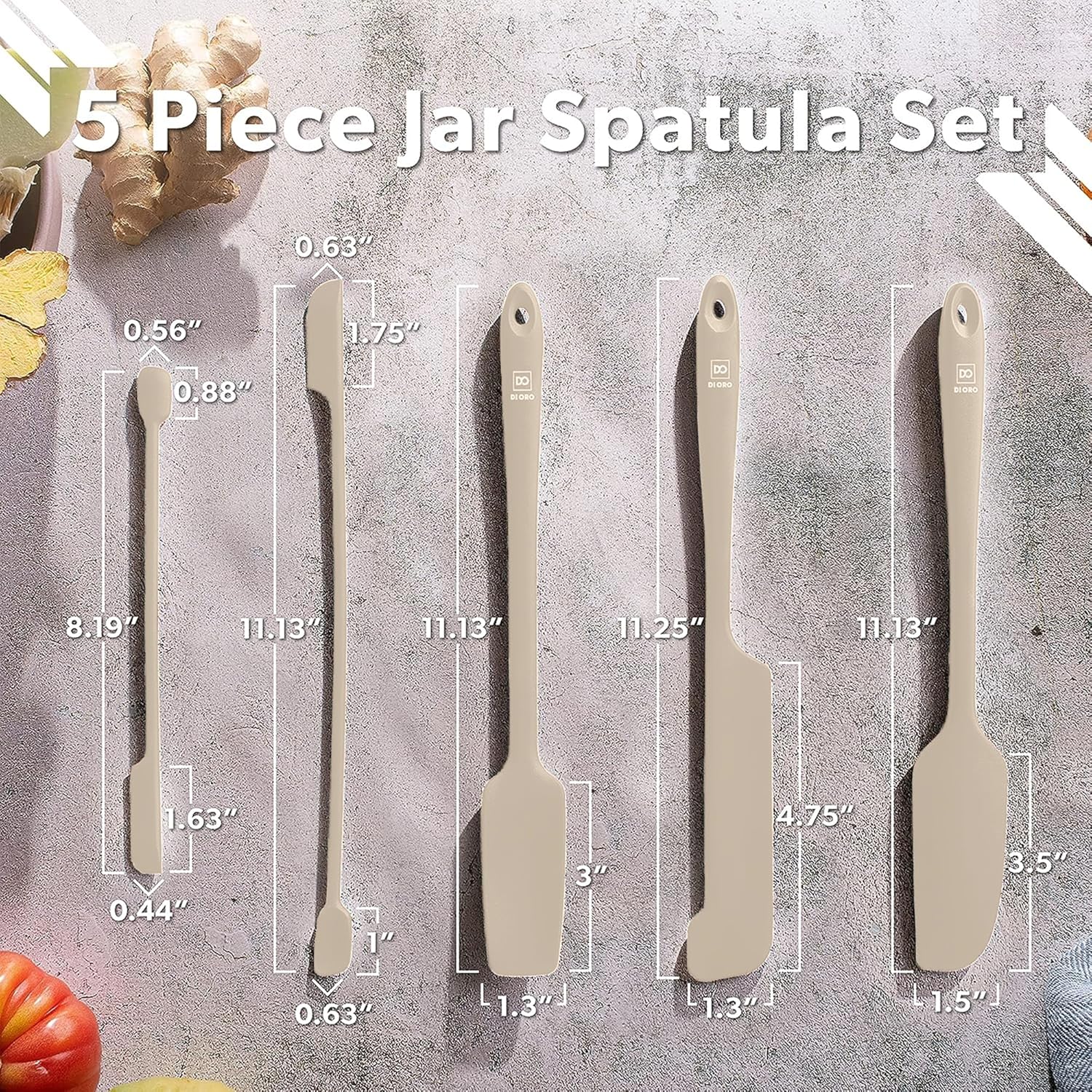 DI ORO Silicone Jar Spatulas for Scraping - Rubber Spatulas Silicone Heat Resistant - Kitchen Spatulas Nonstick Cookware Safe - Silicone Utensil Set for Blenders, Mixing, Baking, & Makeup (5pc, Clay)