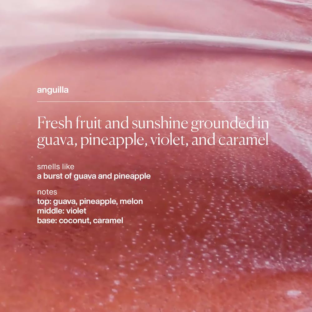 - UNIVERSAL FLAVOR AND DESIGN: Enjoy the refreshing flavor of Anguilla, a fresh fruit and sunshine-y flavor grounded in guava, pineapple, violet, and caramel.