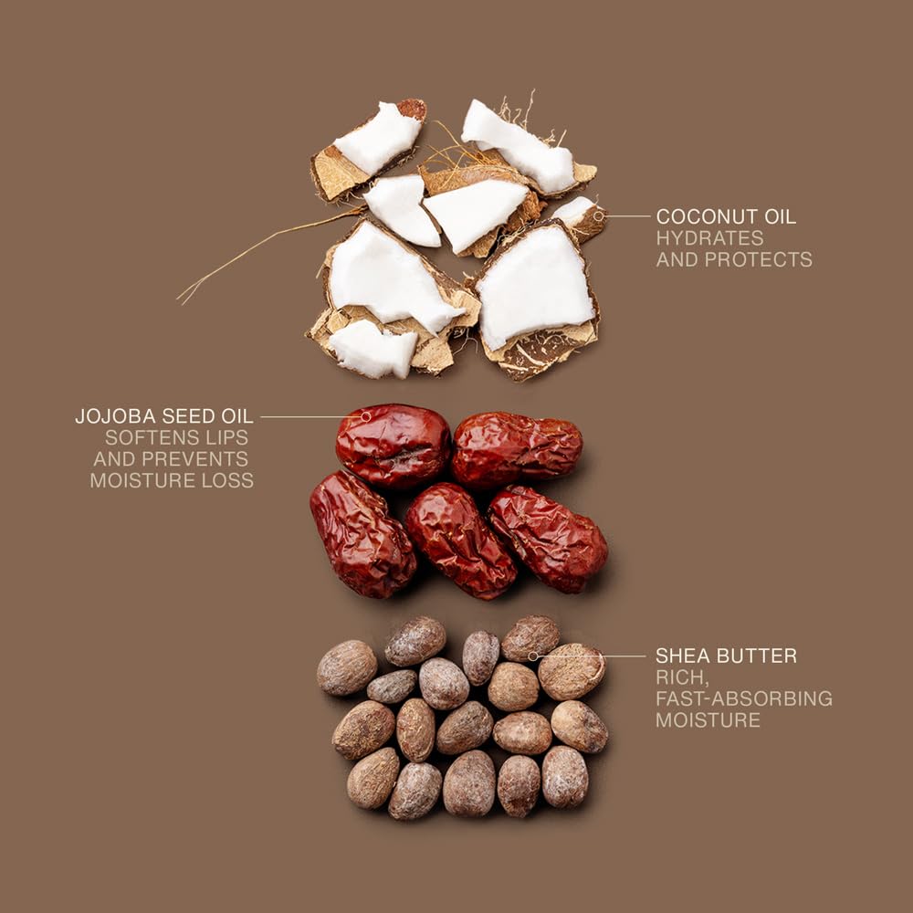 - DEEP, PLANT-POWERED HYDRATION: Our multi-use lip balm delivers deep hydration, powered by coconut oil, shea butter, and jojoba seed oil, effectively soothing dry, flaky lips.This large-sized stick is versatile, as itβs suitable for use on lips, cuticles and cheeks.