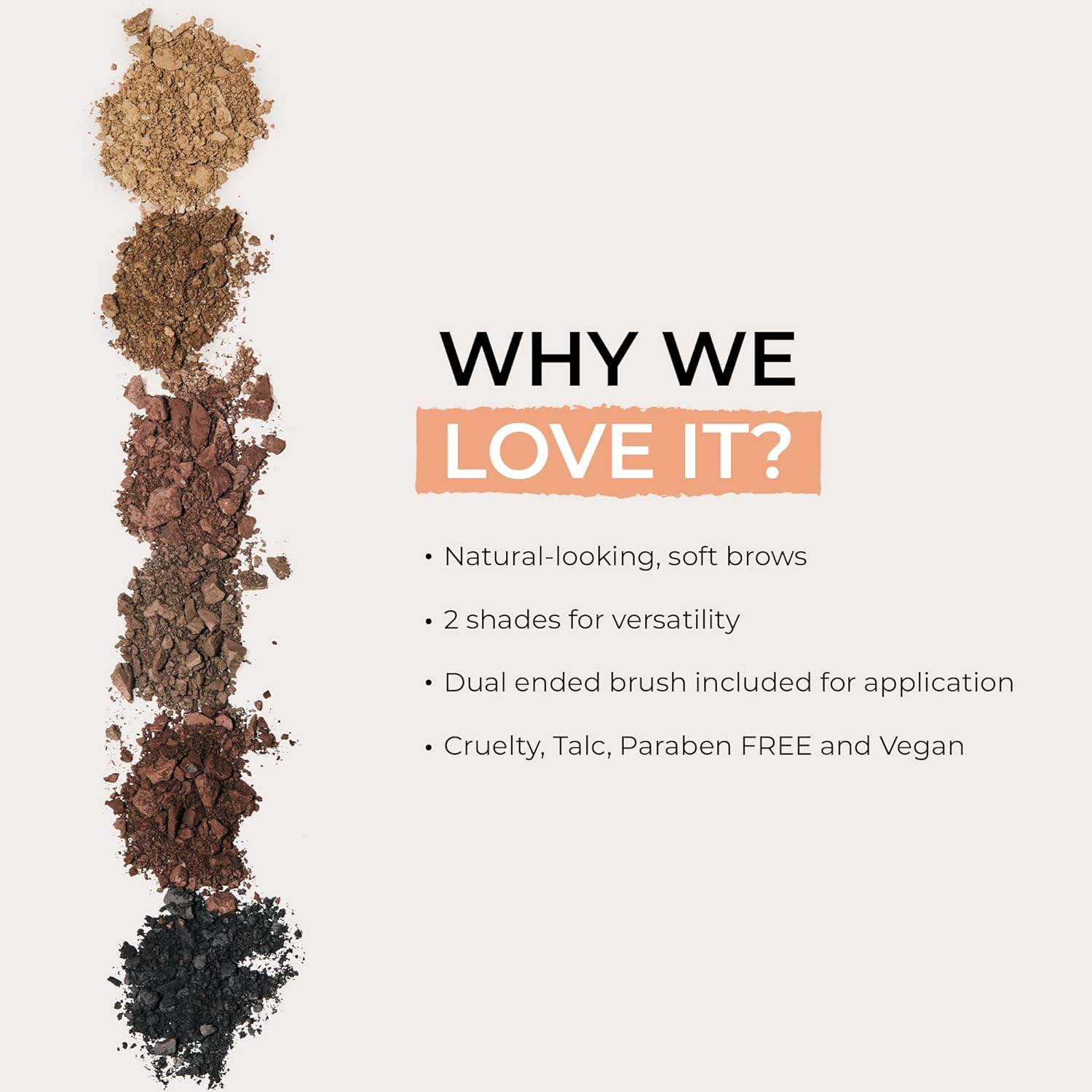- Available in 3 shades to suit a wide range of skin tones and hair colours. Vegan, cruelty free, talc free, paraben free.