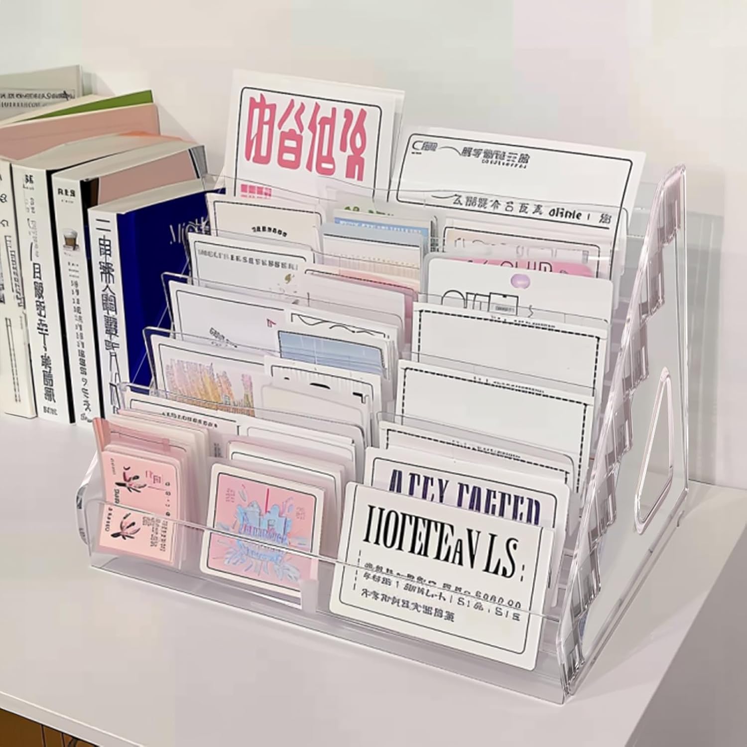 - ăSimple Design Acrylic StandăThe left and right sides are hollowed out for easy access. Its highly transparent and stylish appearance allows it to be used anywhere, such as on the table or in a drawer.