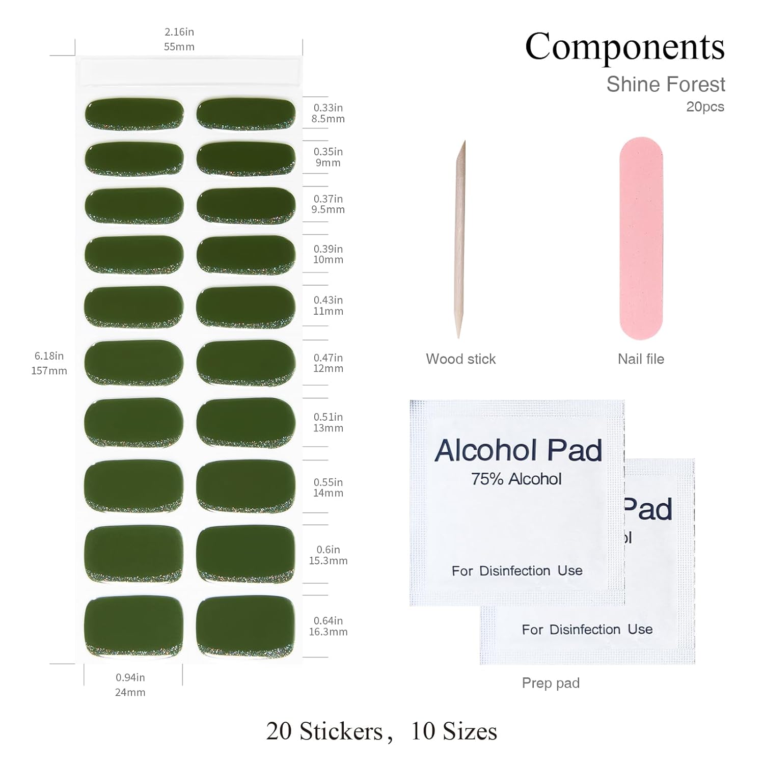 Semi Cured Gel Nail Strips, 20 PCS Gel Nail Stickers Work with UV Light, Salon Quality & Easy to Use - Shine Forest