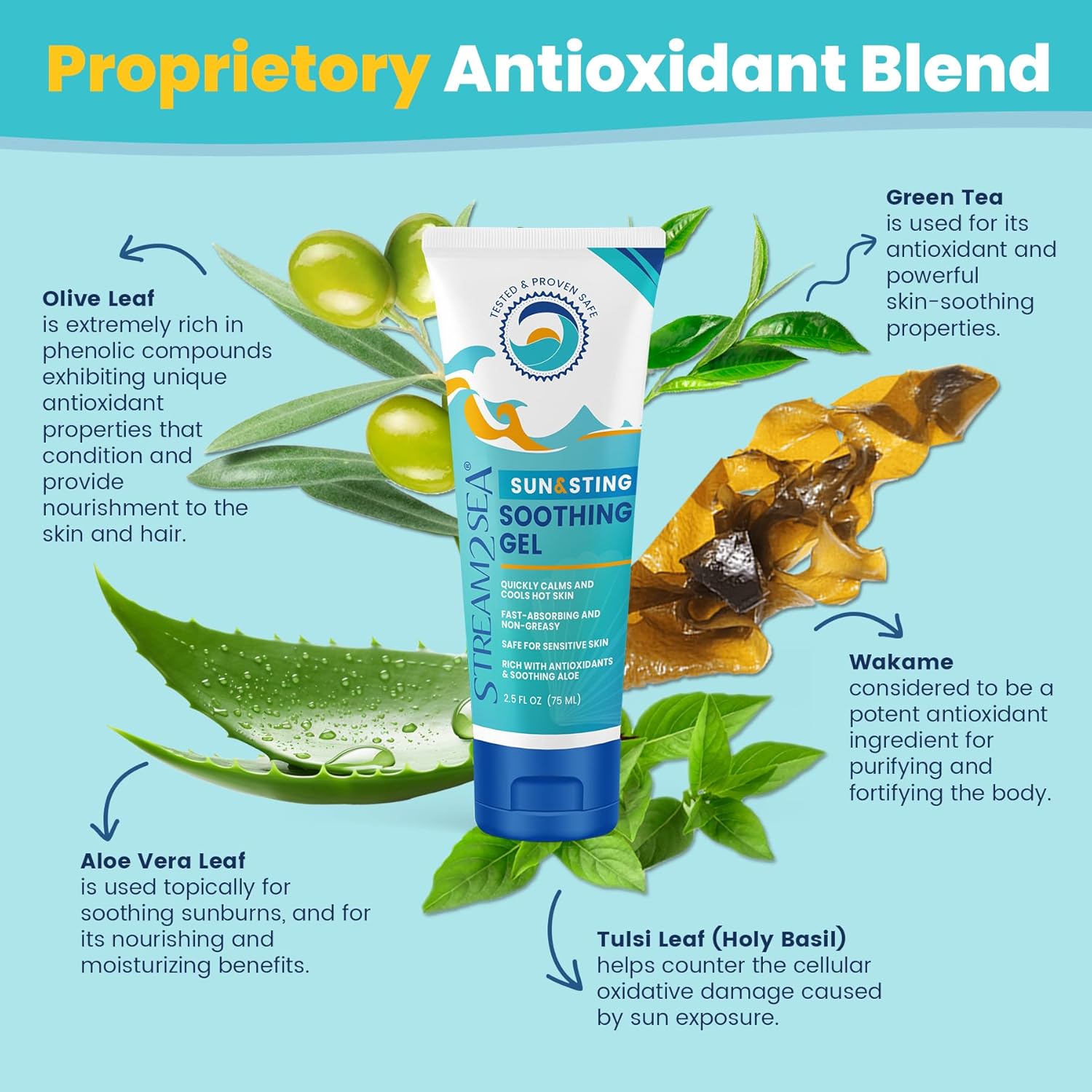 - NATURAL SUNBURN RELIEF: Trusted for its high-quality ingredients, Stream2Seaβs after-sun gel is the best choice for sunburn relief. It hydrates, heals, and soothes your skin naturally, promoting a quick recovery.
