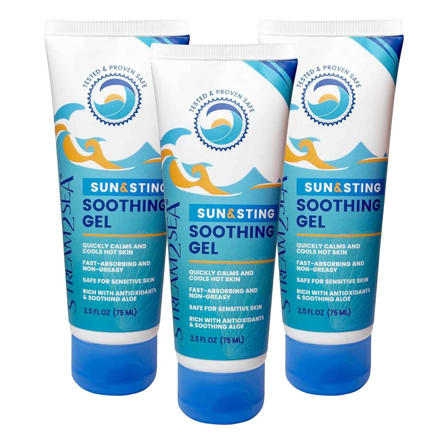 - NATURAL SUNBURN RELIEF: Trusted for its high-quality ingredients, Stream2Seaβs after-sun gel is the best choice for sunburn relief. It hydrates, heals, and soothes your skin naturally, promoting a quick recovery.