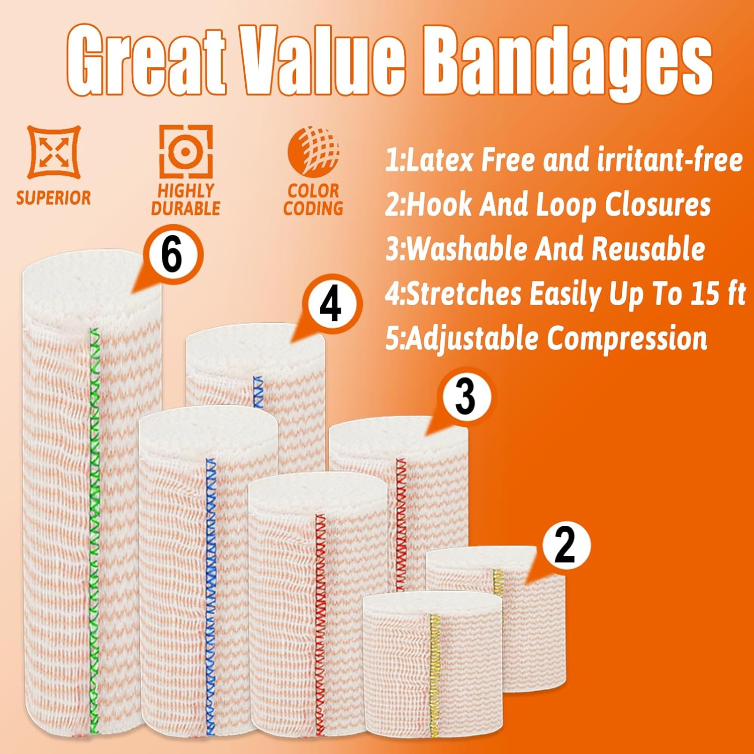 - Sufficient quantity,Individually Packed: 6 rolls of 4-inch leg compression bandages for your daily use and replacement needs,Each 6 in elastic bandage is individually packed for hygiene and convenience. The packaging ensures that the bandages remain clean and ready to use whenever you need them.