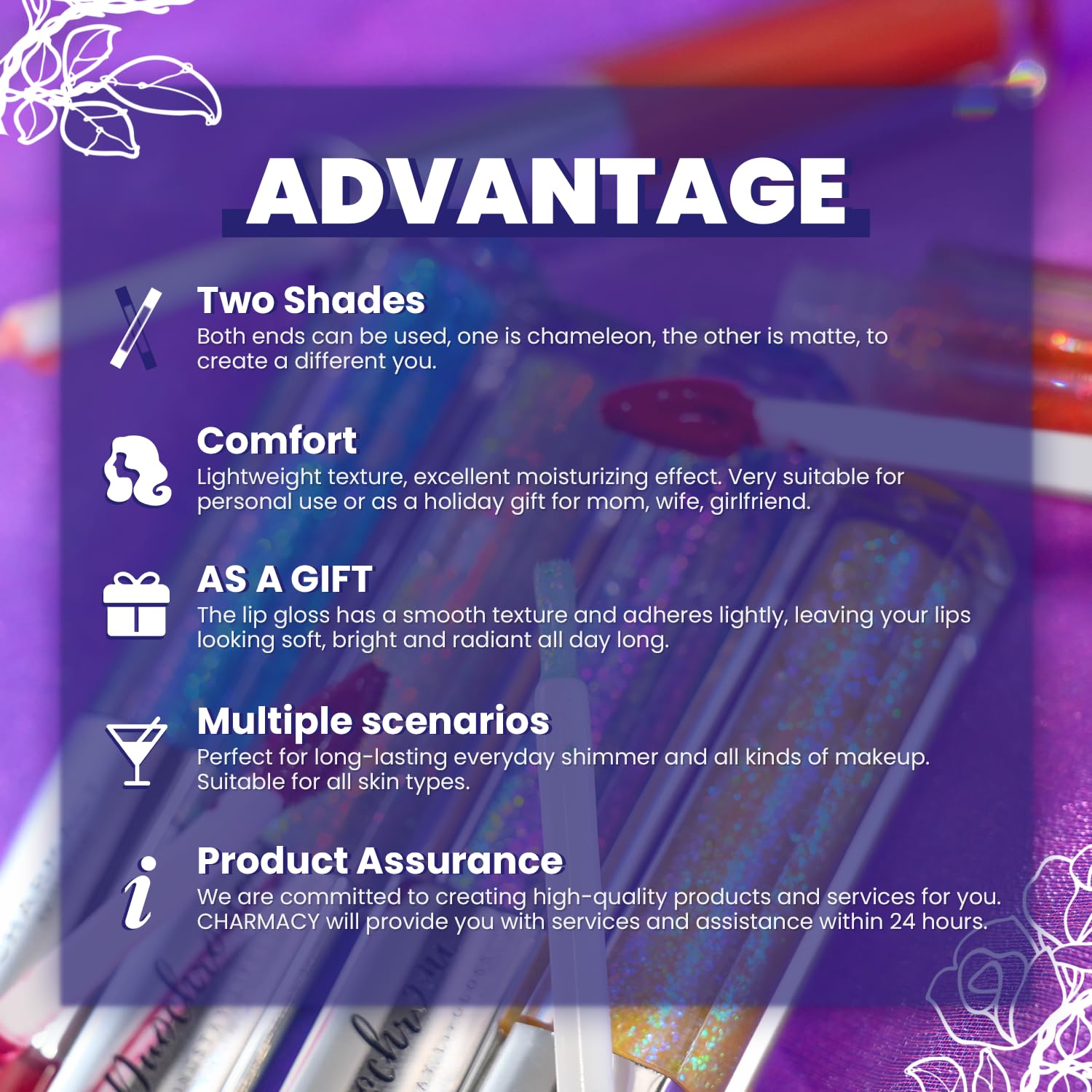 - Dual-Ended Convenience: This versatile lip gloss features two ends β one for a vibrant base color and the other for a chameleon metallic glossy, high-shine finish, perfect for day-to-night transformations.