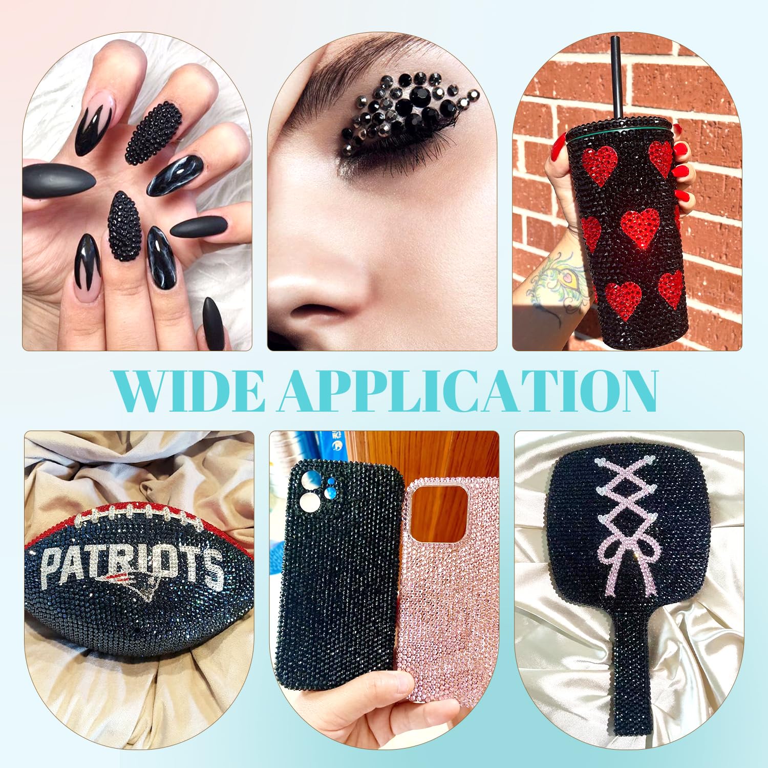 6100Pcs Resin Rhinestones for Crafting with 2Pcs 10ml B7000 Jewelry Glue, 1 Box Flatback Crystals Diamond (Black) for Bedazzling Crafts DIY Nail Art Non Hotfix Gems for Clothing Shoes Tumblers