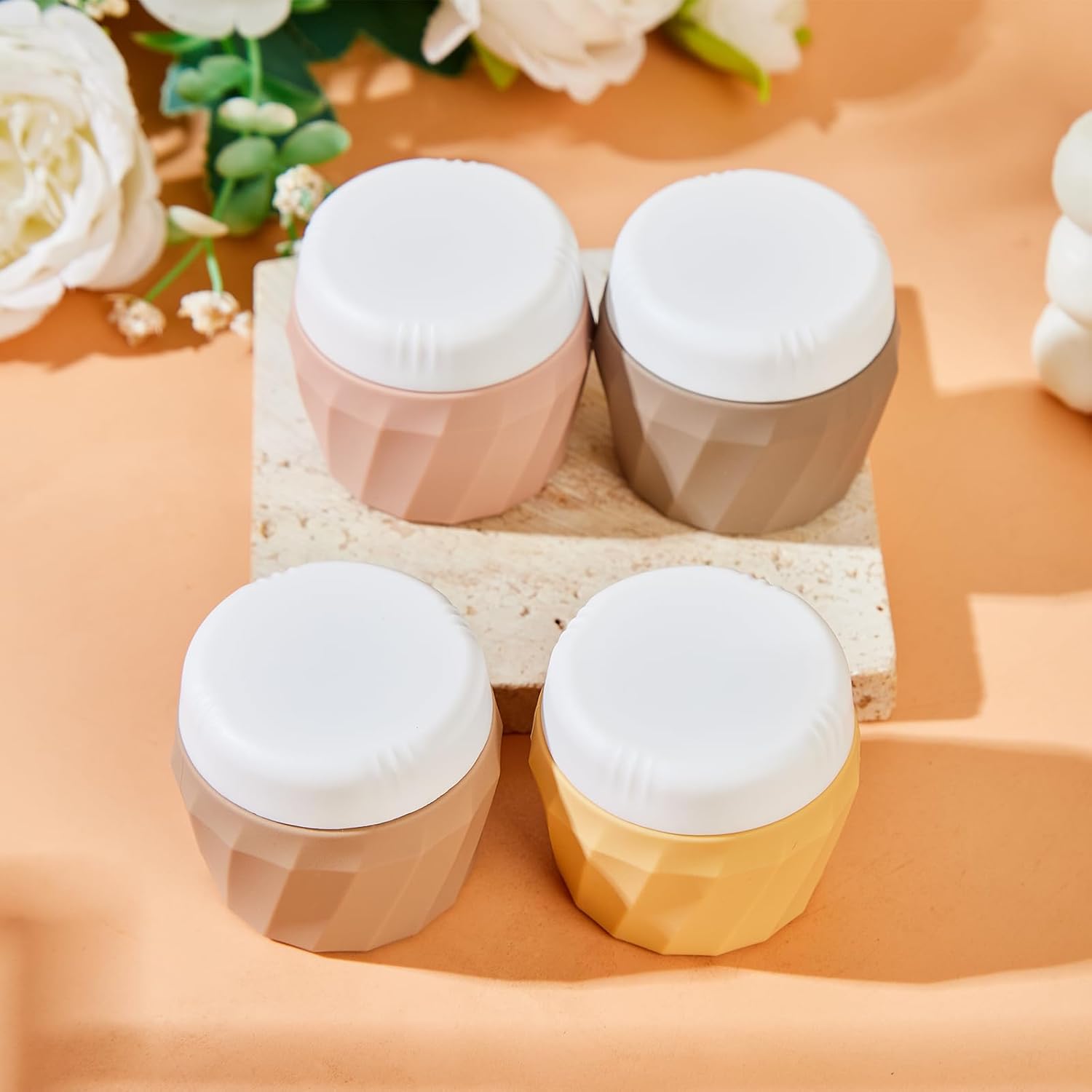 Travel Containers for Toiletries, Premium Silicone Cosmetic Cream Jars, TSA Approved Leak-Proof Refillable Travel Size Toiletries with Clear Bag for Cosmetic Face Body Cream (Apricot, 1OZ)