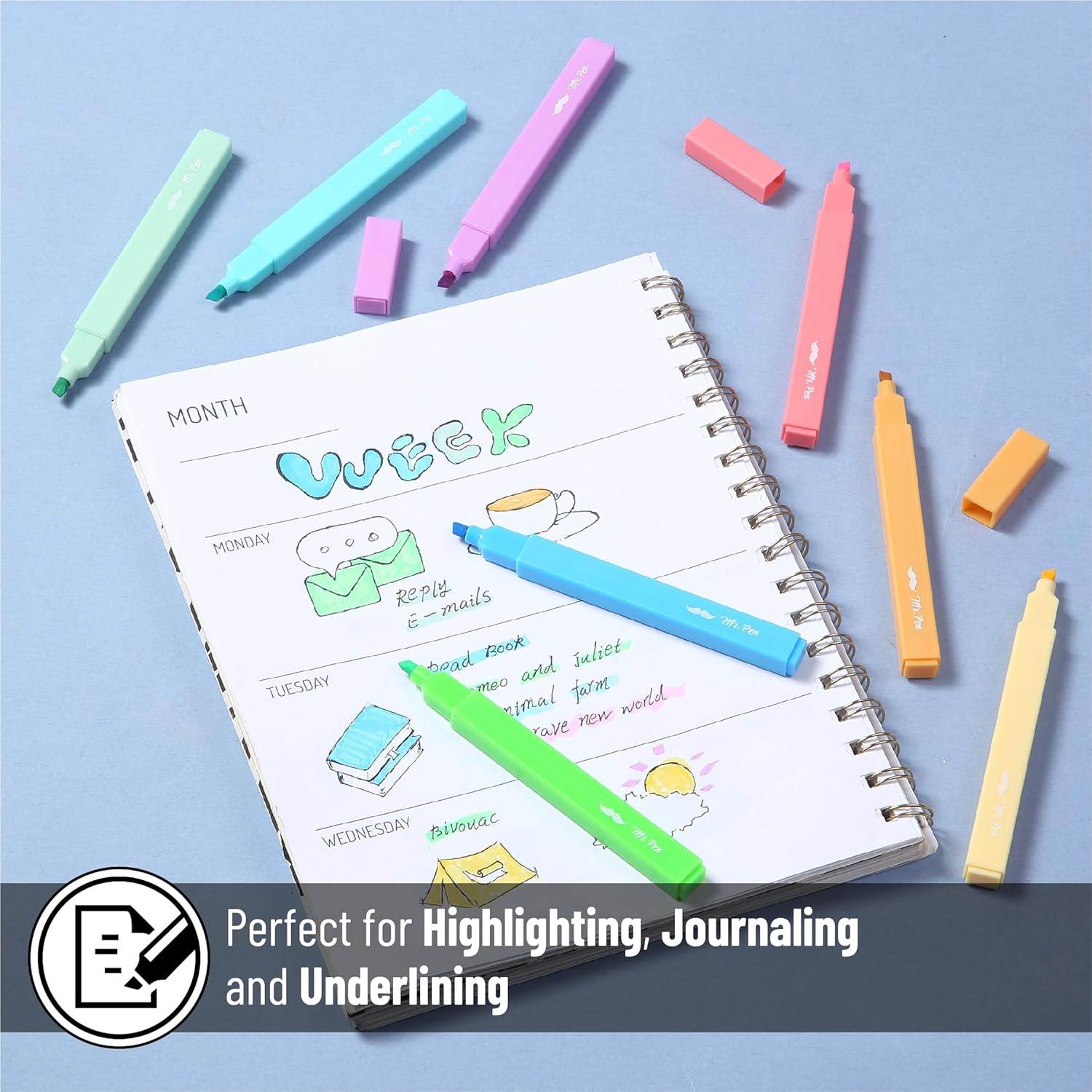 - Mr. Pen aesthetic highlighters come in a set of 8 gorgeous summer-inspired colors, perfect for adding warmth and vibrancy to your notes and projects.