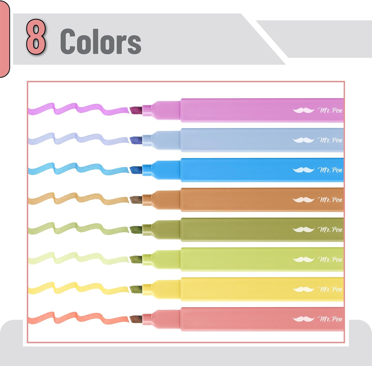 - Mr. Pen aesthetic highlighters come in a set of 8 warm and vibrant autumn-inspired colors, perfect for adding seasonal charm to your notes and projects.