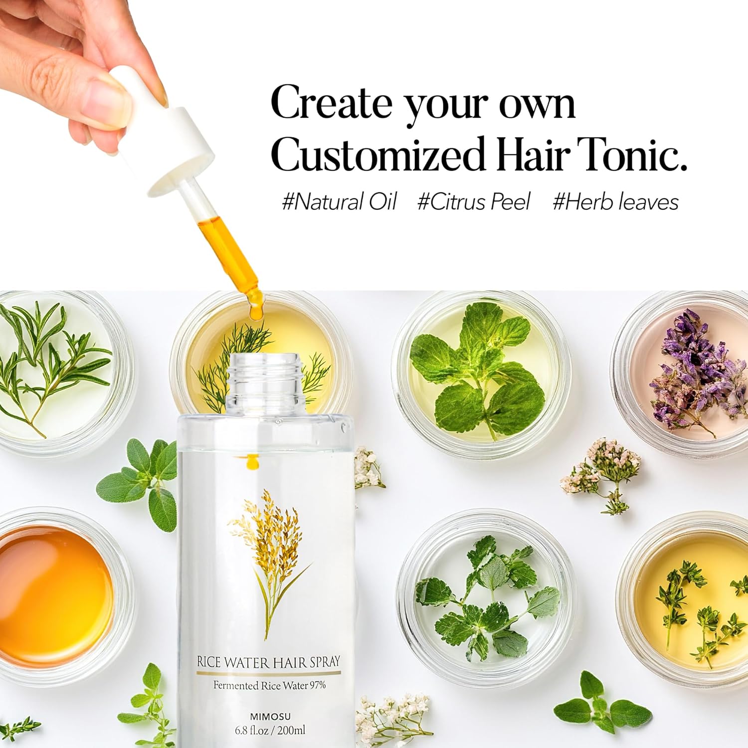 mimosu 97% Rice Water Hair Growth Spray - Fermented Rice Water & Biotin Serum, PHA Toner, Korean hair care Formula, 6.8fl.oz