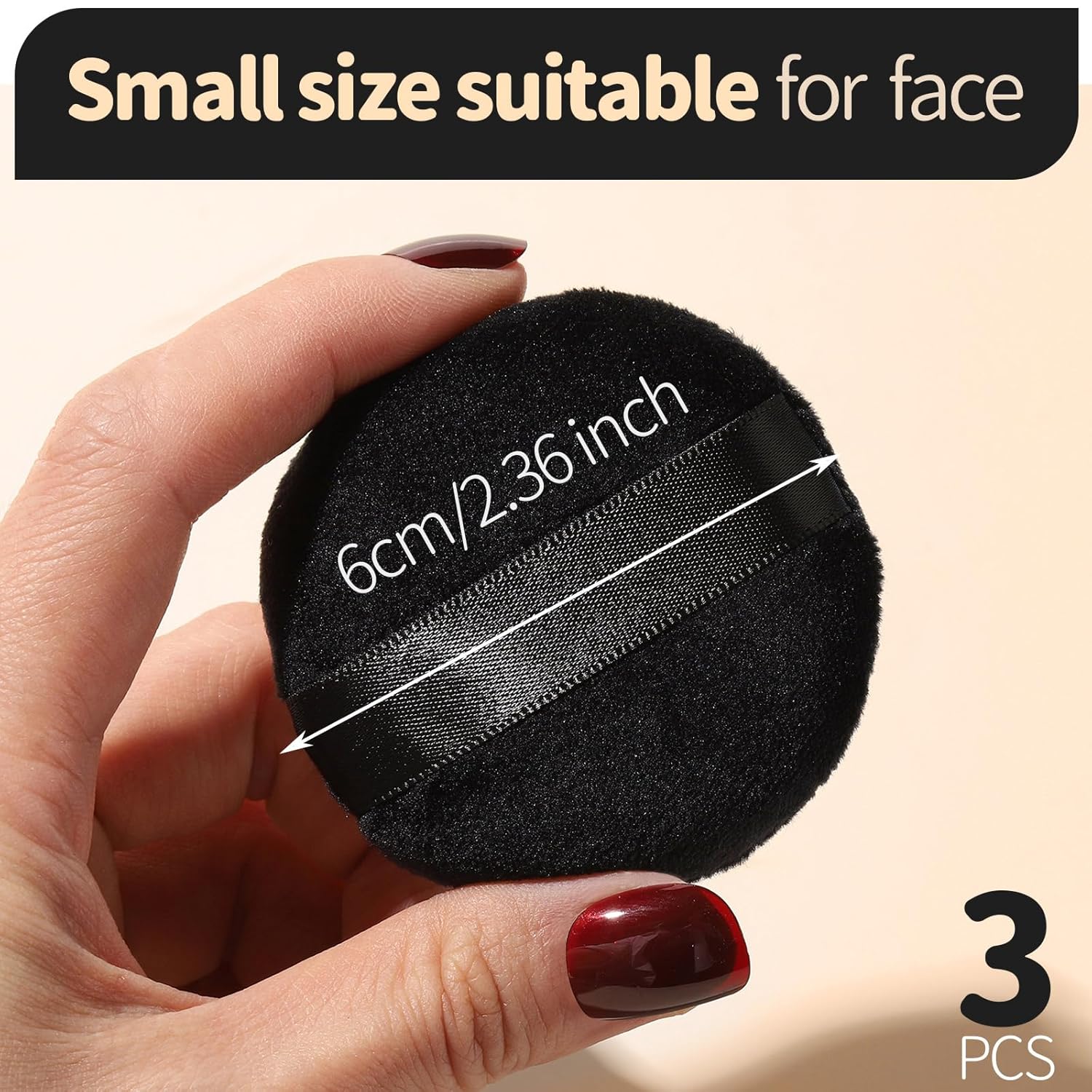 - Black Makeup Powder Puff and Container: Come with 3pcs 2.36"(6cm) black powder puffs for face powder and cases. Each powder puff is well packaged in case. Convenient and clean for storage and use. Suitable for daily use, quick touch-ups and traveling. No worrying about getting puff dirty and mess