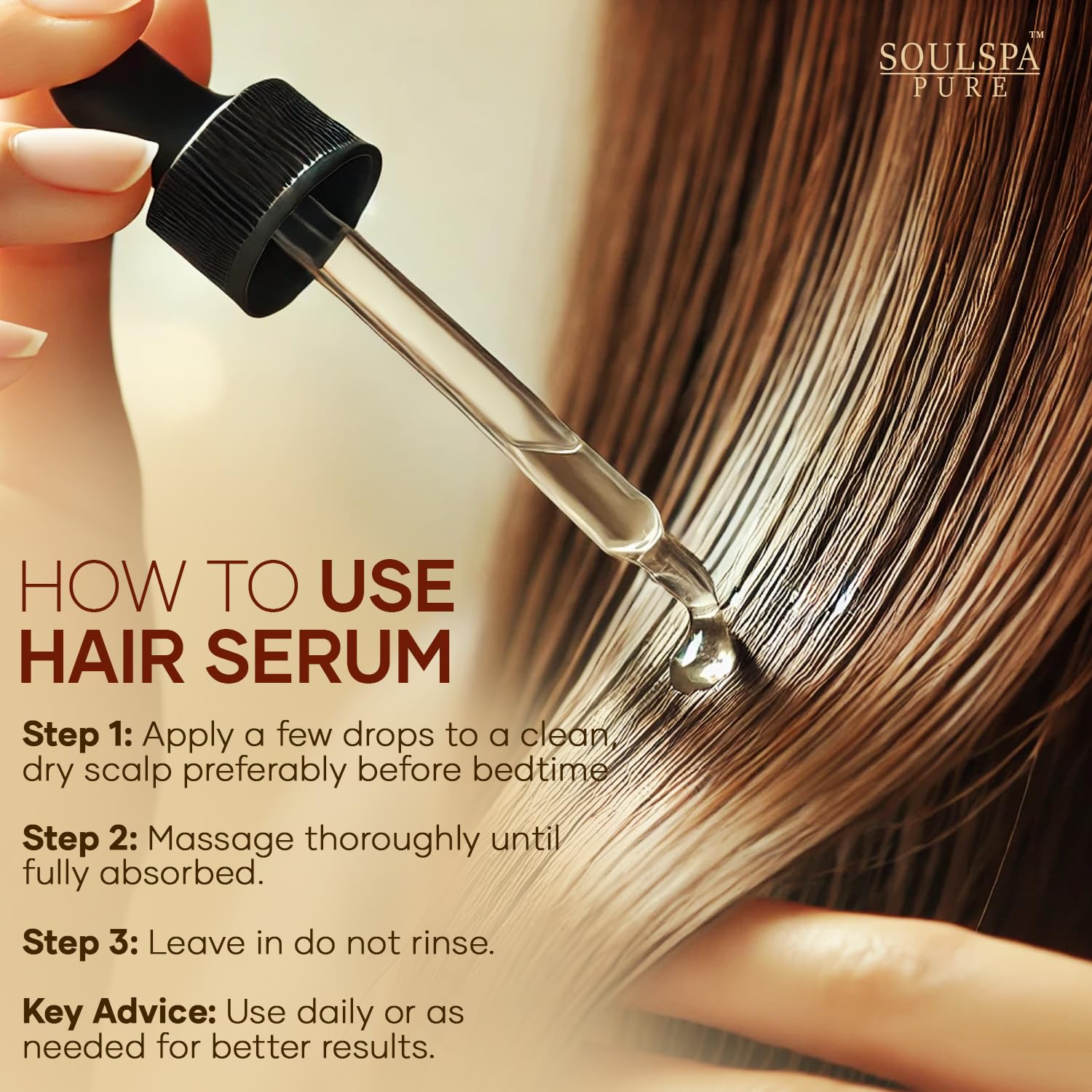 - Easy and Versatile Application: Designed for daily use on wet or dry hair, our hair serum for hair growth can be simply applied to the scalp, massaged gently, and left in without rinsing. Suitable for morning or night routines, this hair growth oil seamlessly integrates into any hair care regimen.