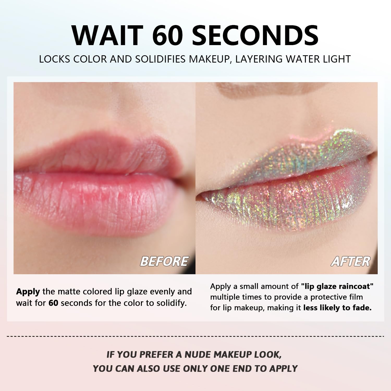 - 【Double-ended design】: One end is a lip balm/lip plumping gloss/lip mask, and the other end is a metallic highlight effect, which can easily switch to a watery lip to meet a variety of makeup needs