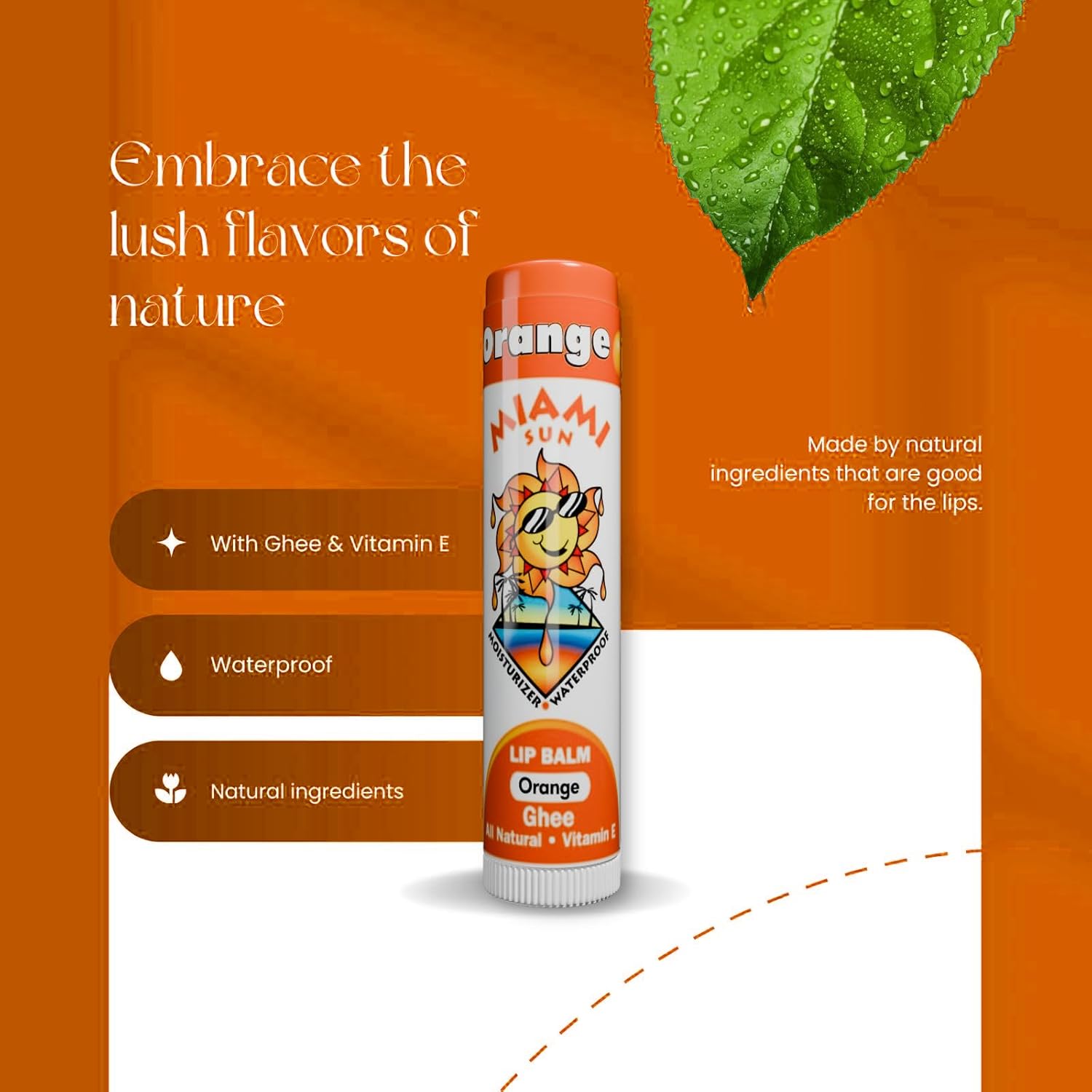 Miami Sun Natural Ghee Lip Balm, Hydrating Lip Treatment with Shea Butter & Beeswax, Organic & Non-Toxic, Best for Dry, Chapped Lips - Moisturizing, Healing, Chemical-Free Lip Repair (4 Count, Orange)