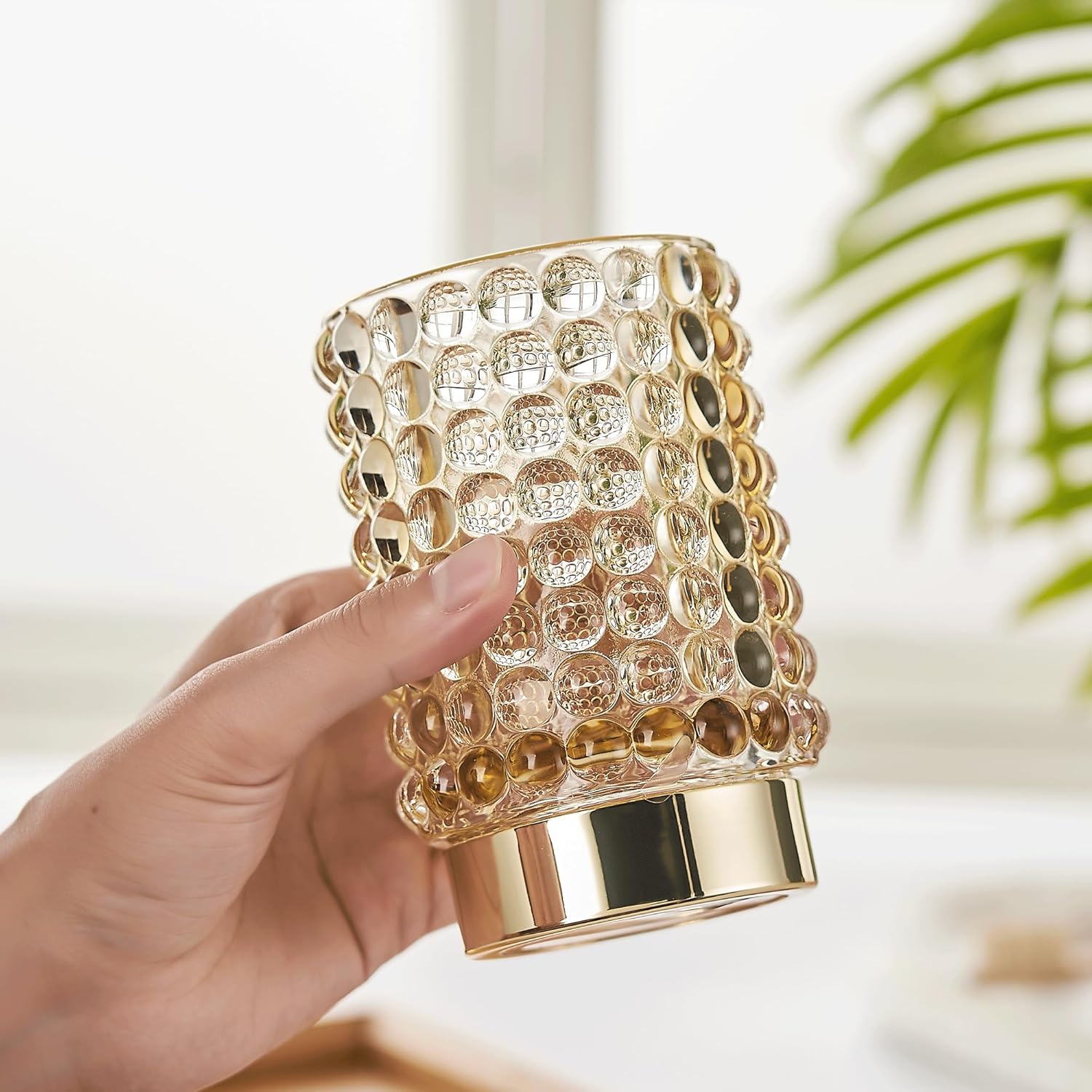 Makeup Brush Holder Organizer,Toothbrush Holders,Desk Pen Pencil Holder,Multifunctional Vintage Glass Brush Cup(A38-3-US/Gold/L)
