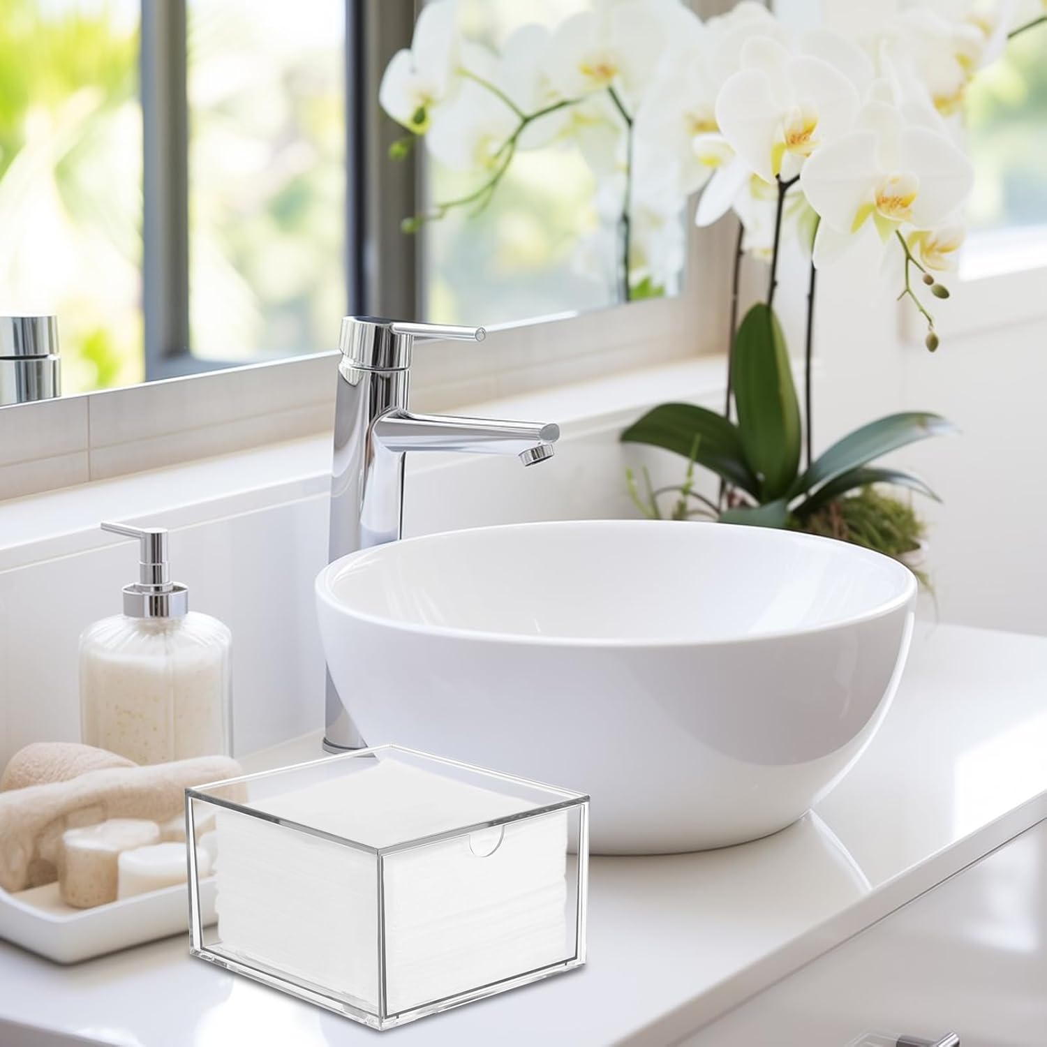 - Widely Application: Beyond bathroom and bedroom, this transparent disposable napkin holder container is also a great fit for kitchen. It keeps spaces tidy and aesthetically pleasing whether you're storing tissues, cotton pads, K Cup Coffee Pods, laundry pods or kitchen gadgets.