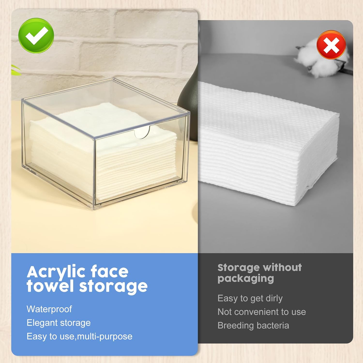 - Clear Design: The disposable face towel storage organizer allows you to quickly spot what's inside, making it easy to grab a tissue or find any stored items without hassle.